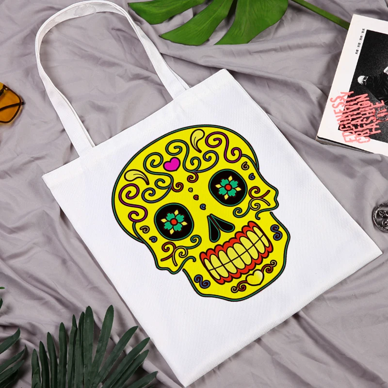 Холщовая Сумка 2021, тканевая сумка-шоппер, Женская Аниме сумка-шоппер с черепом, дизайнерские сумки через плечо, шоппер с настраиваемым логотипом
