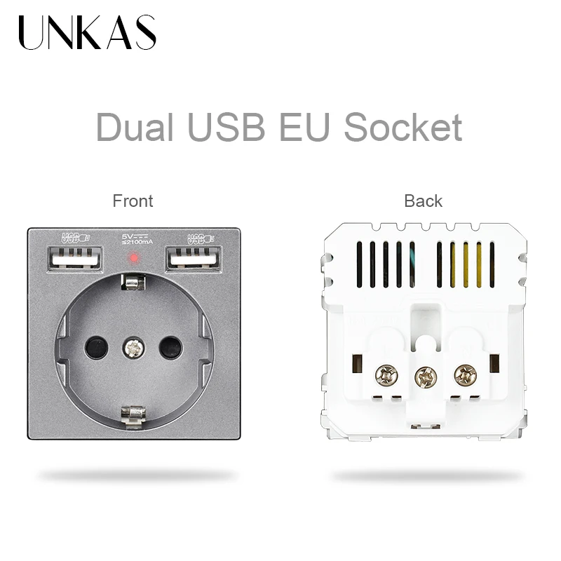 UNKAS серая стеклянная панель «сделай сам» комбинированная французская розетка ЕС с двумя USB 1 2 3 4 Gang 1/2 Way кнопка включения/выключения Switch