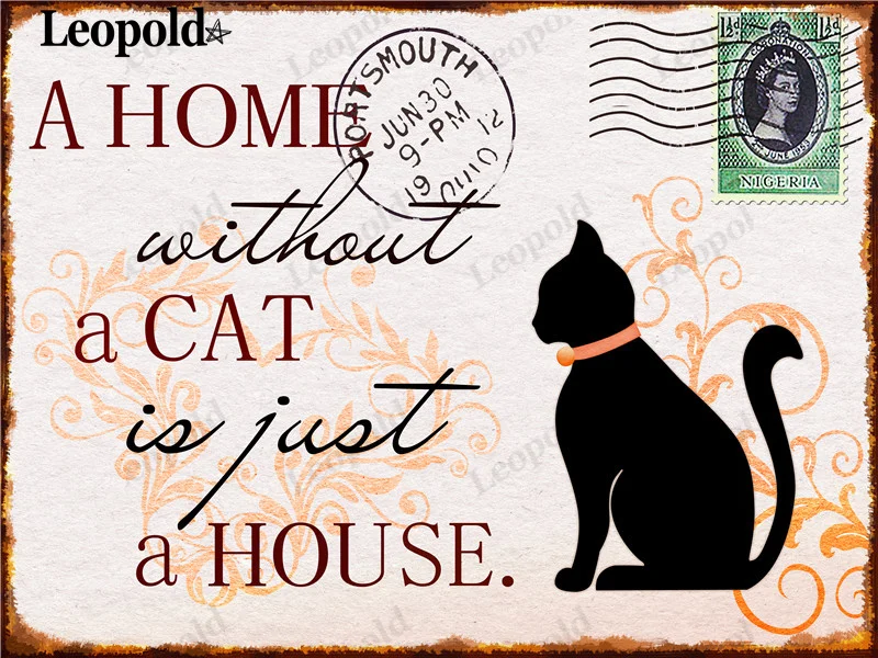 Винтажный металлический плакат с милым котом, постер с животными, з...