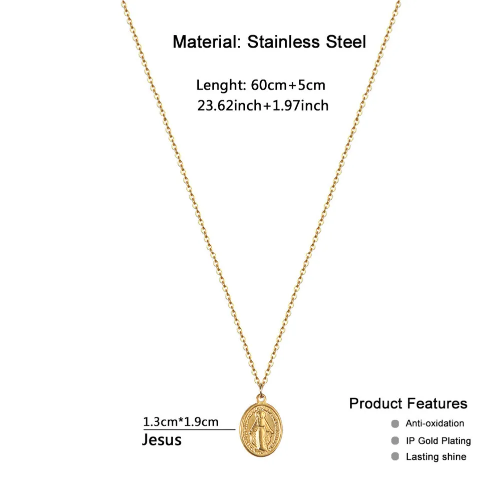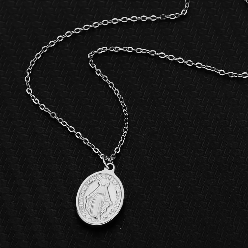 Ожерелье из нержавеющей стали с изображением Девы монет для женщин, подвеска с изображением девы Марии, Роло, цепочка, религиозные украшения