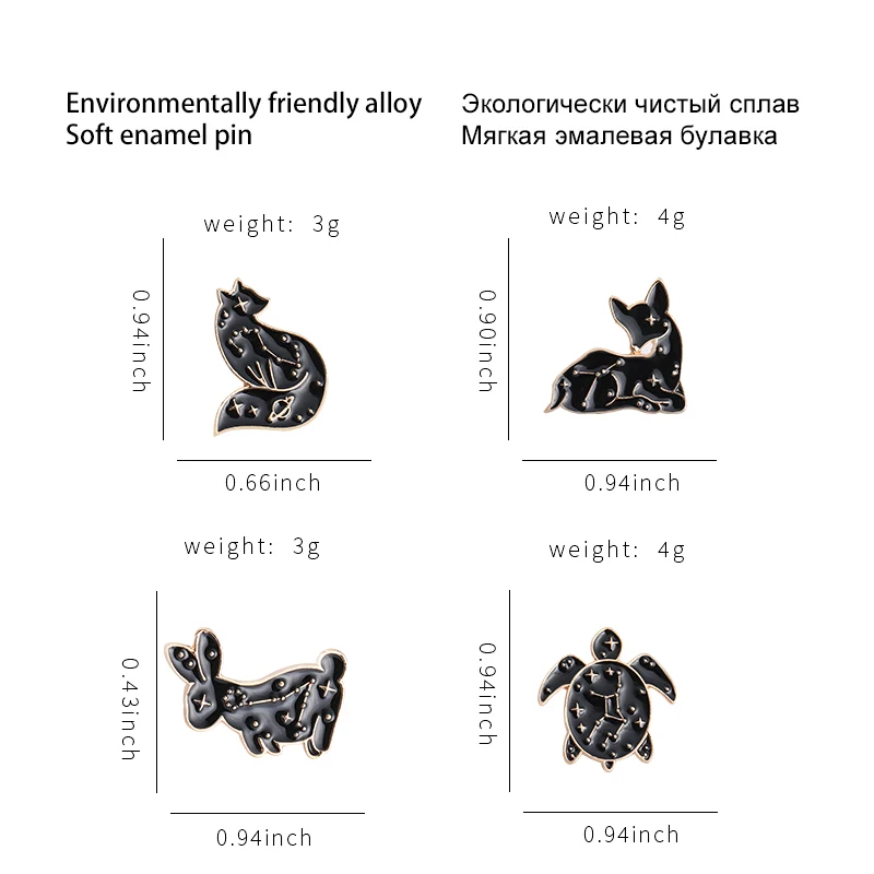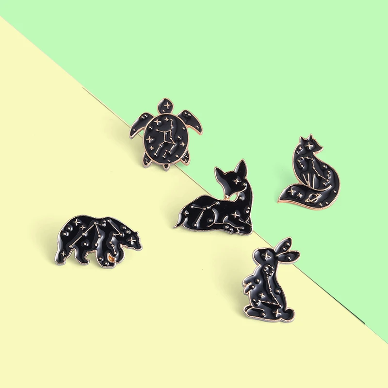 Эмалированная заколка с изображением Черной Лисы кролика оленя морской черепахи животных созвездий Броши для женщин Подарки друзьям памятные Влюбленные