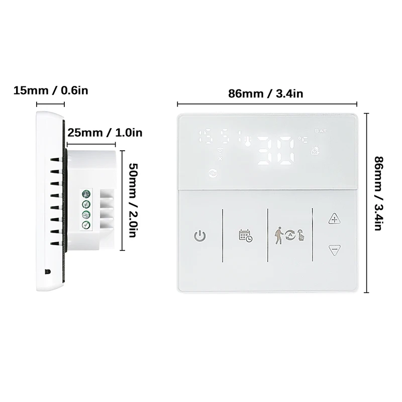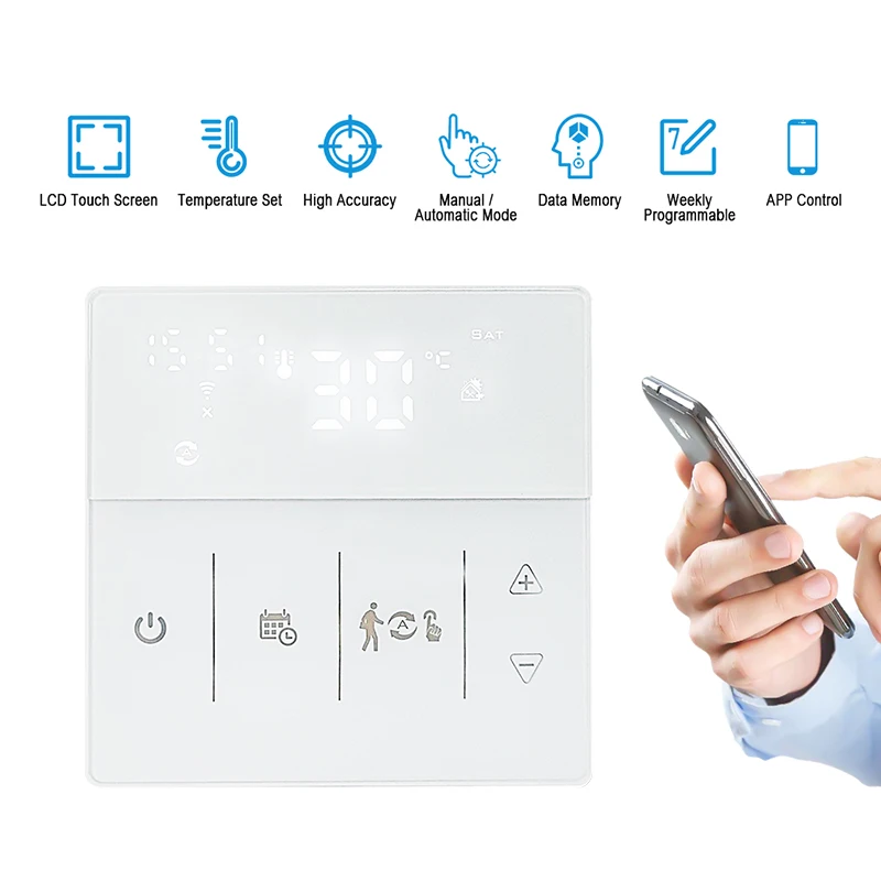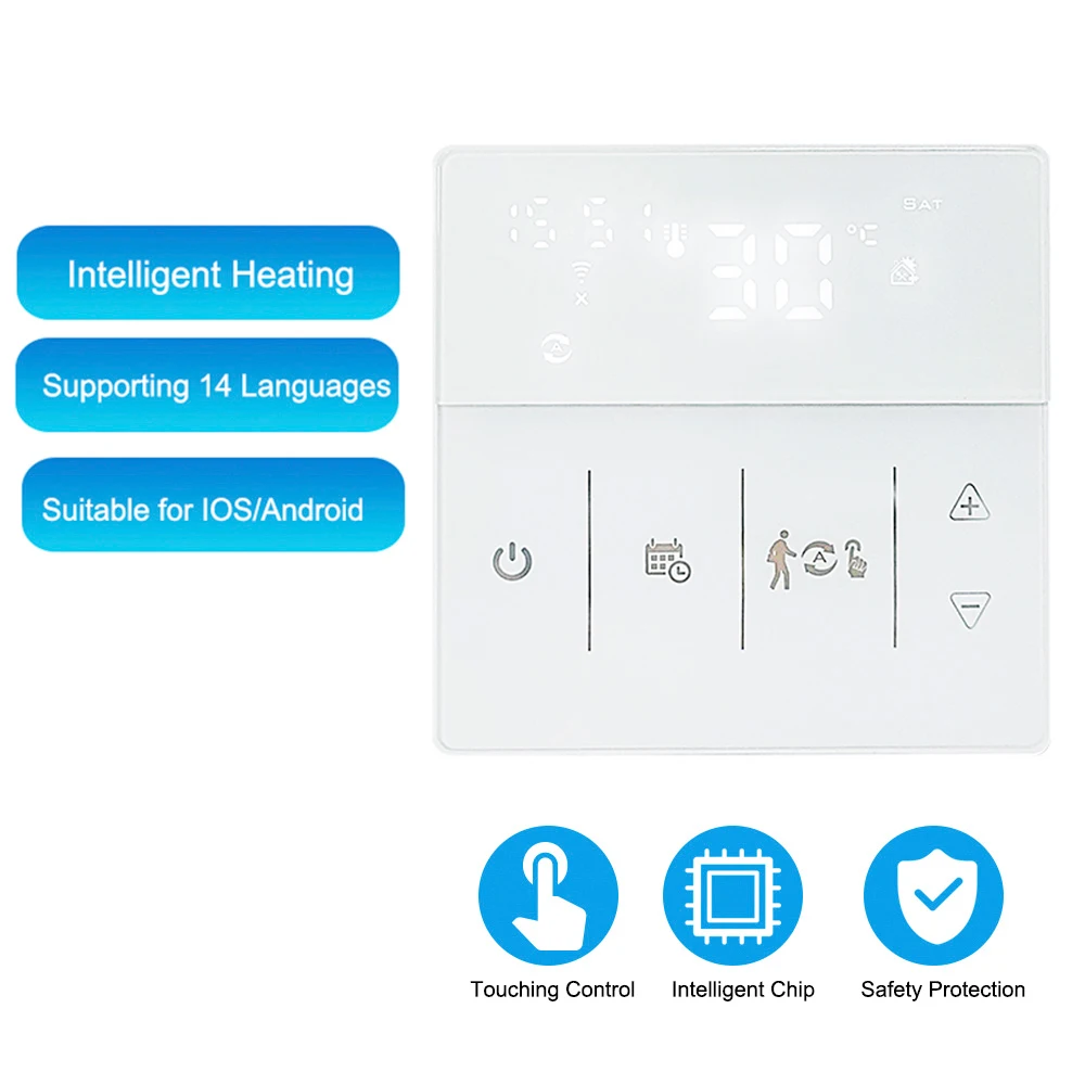 1. Wi-fi и Голосовое управление, более удобное и практичное.2. Дистанционное управление смартфоном: дистанционное управление температурой вашего дома для достижения расширенного комфорта с помощью умного приложения, простое управление смартфонами в любом месте.3. Имеет функцию калибровки температуры, функцию защиты от замерзания, дополнительную функцию двойного контроля температуры.4,5 Программирование 2: Поддержка полностью автоматических программ или ручной настройки 5 2-дневных еженедельных расписаний 6 этапов в день для максимального удобства и удобства. Память данных после отключения питания.5. Эти блоки предназначены для использования в коммерческих, промышленных, гражданских и эстетических свойствах. Обеспечьте максимальное и всестороннее удобство вашей умной жизни.Название продукта: умный термостатДоступные монтажные коробки: 86*86 мм квадратная или европейская 60 мм круглая коробка (не входит в комплект)Мощность: 90-240 В, 50 / 60 ГцТекущая нагрузка: 16 А (Электрический нагрев)Применение: умный нагревЦвет: цвет фотоМатериал: ПК + АБС-пластикРазмер: 86*86 ммСодержимое упаковки:1 умный термостат1 * Руководство пользователяВ комплект входит только указанное выше содержимое, другие продукты в комплект не входят.Примечание: светильник вая съемка и различные дисплеи могут привести к тому, что цвет товара на изображении будет немного отличаться от реального. Погрешность измерения +/- 1-3 см.
