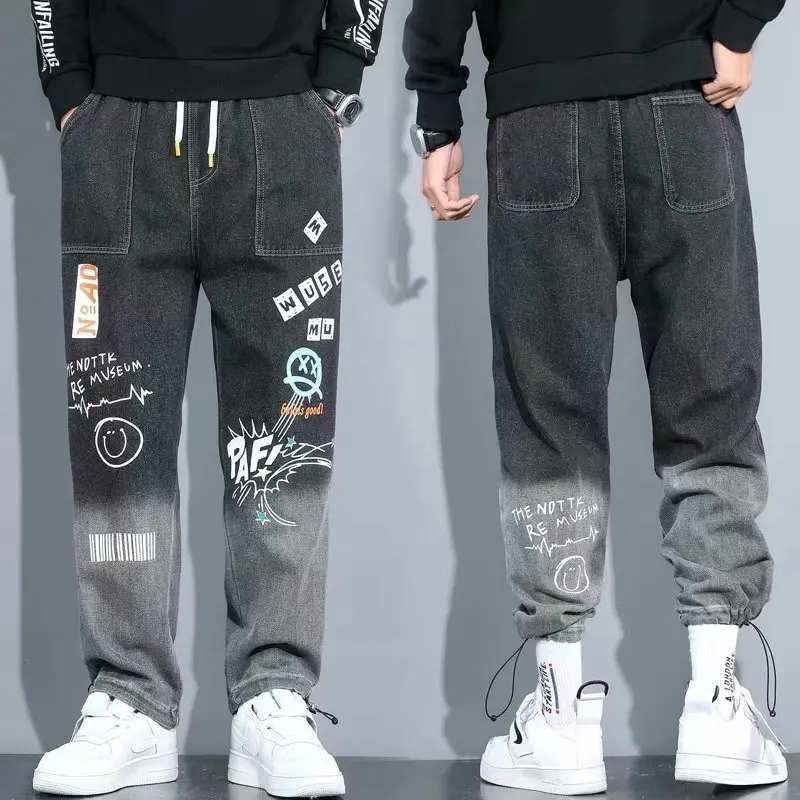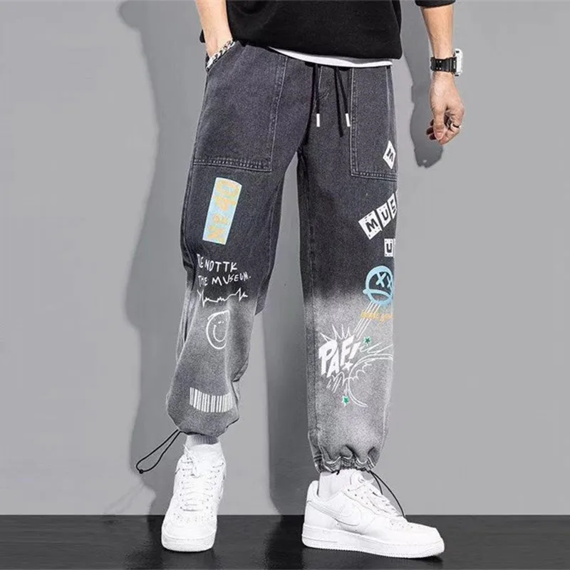 Джинсы мужские в стиле хип-хоп, трендовые уличные штаны для бега, повседневные брюки с эластичным поясом, джоггеры, брюки-карго для мужчин