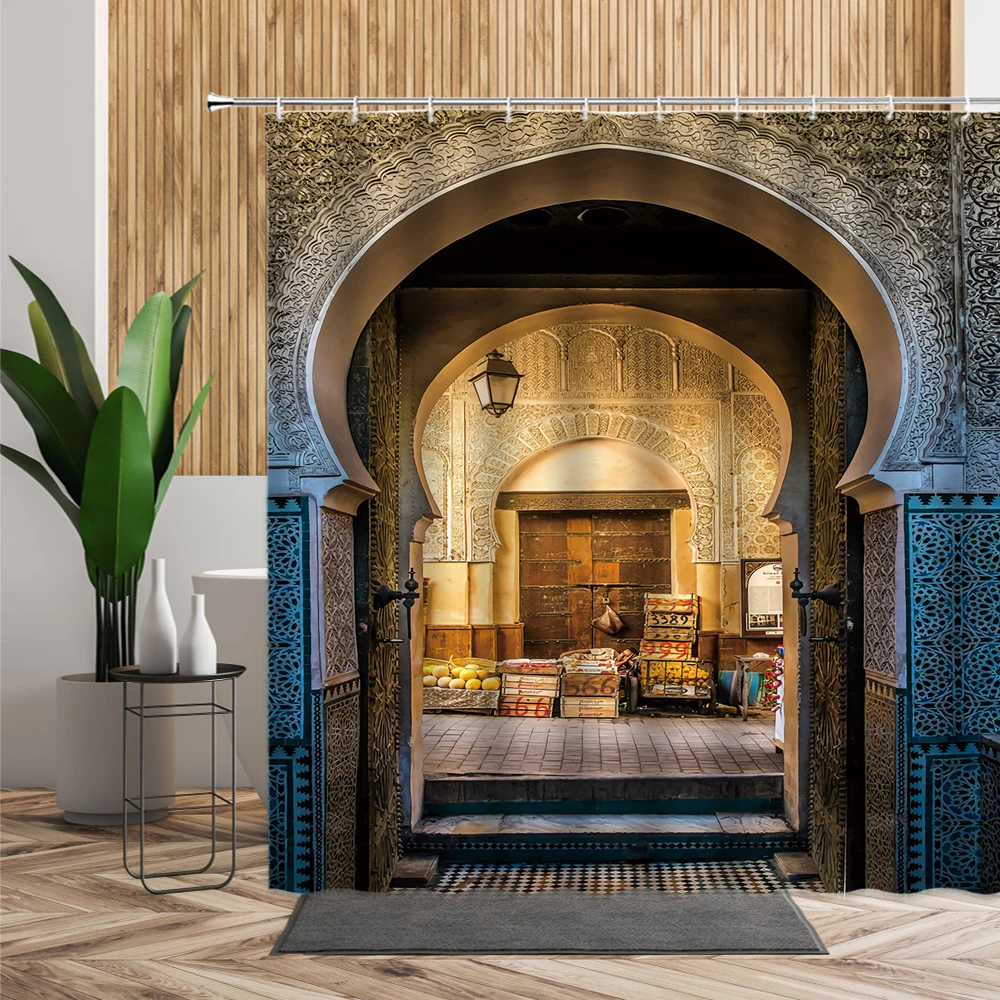 Занавеска для душа в марокканском стиле, водонепроницаемая, с крючками
