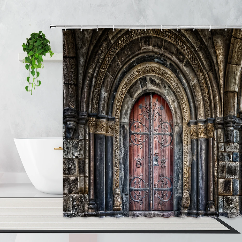 Старые винтажные деревянные двери, занавески для душа, водонепрониц...