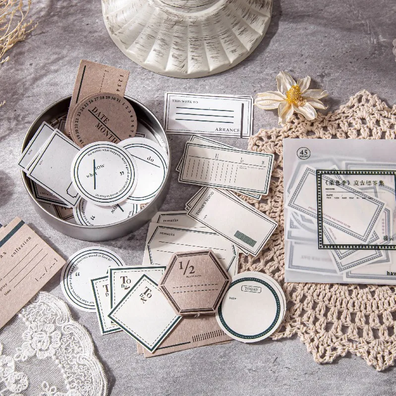 45 шт Винтаж Бумага Стикеры набор Ретро рамки Стиль Клей Diy декоративные этикетки для Скрапбукинг канцелярских принадлежностей