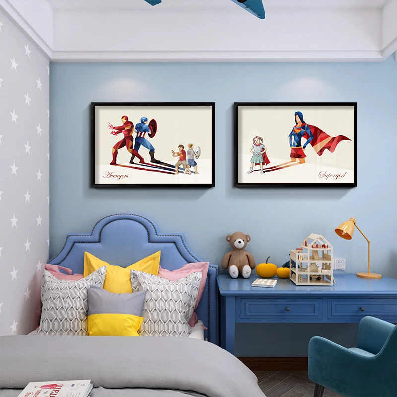 Декоративный плакат Marvel Мстители, мультяшный принт супергероев, картина для детской комнаты, Настенная картина с изображением Человека-паука, Железного человека