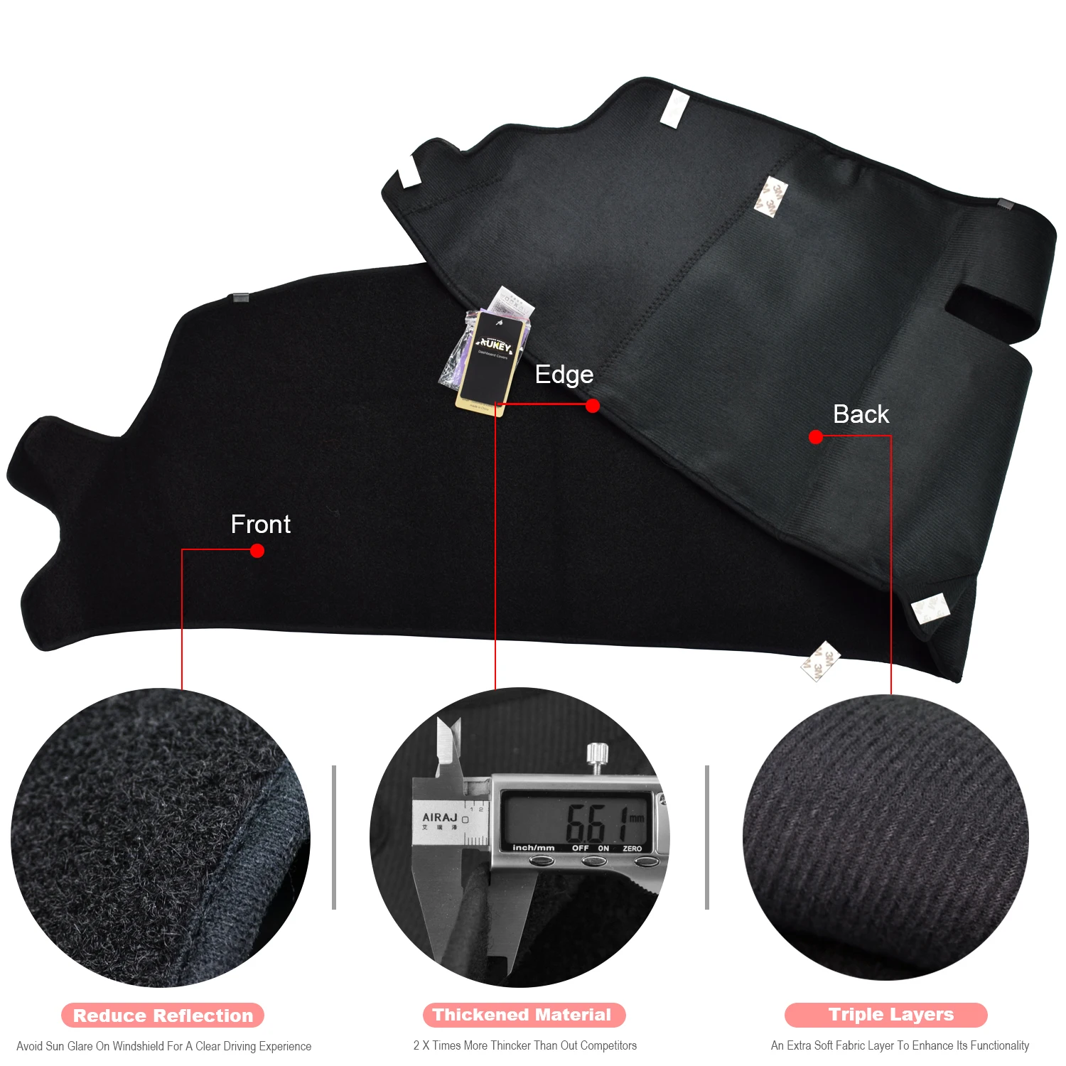Простая установкаКонтуры для приборной панелиНе садится, не выцветает или не искажаетЗащищает приборную панель от ультрафиолетовых лучейУстраняет растрескиваниеУменьшает бликиУФ стабилизированная Высококачественная полиэфирная Автоматическая тканьДышит, чтобы рассеивать теплоБольшие вентиляционные вырезы, чтобы не ограничивать воздушный поток тумана