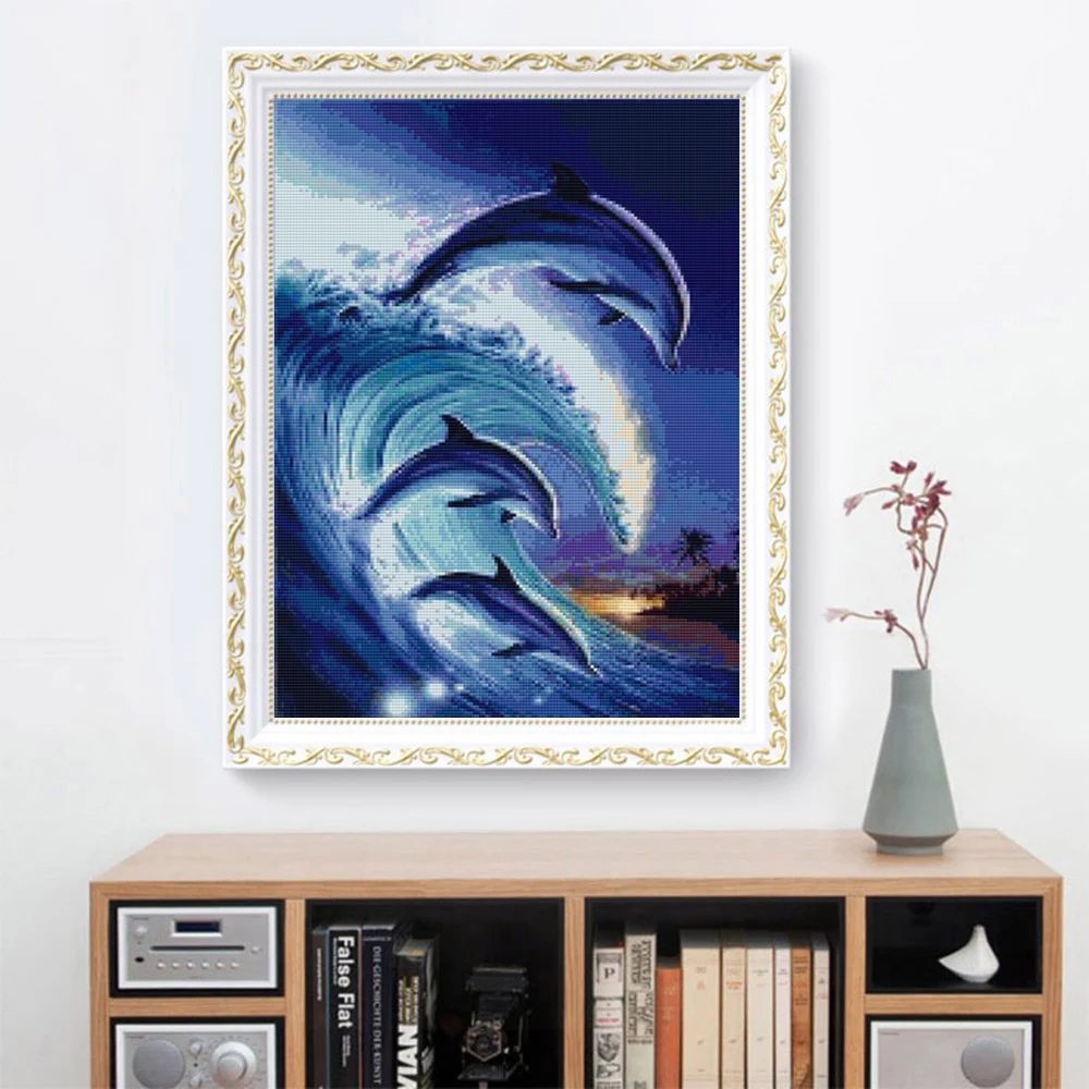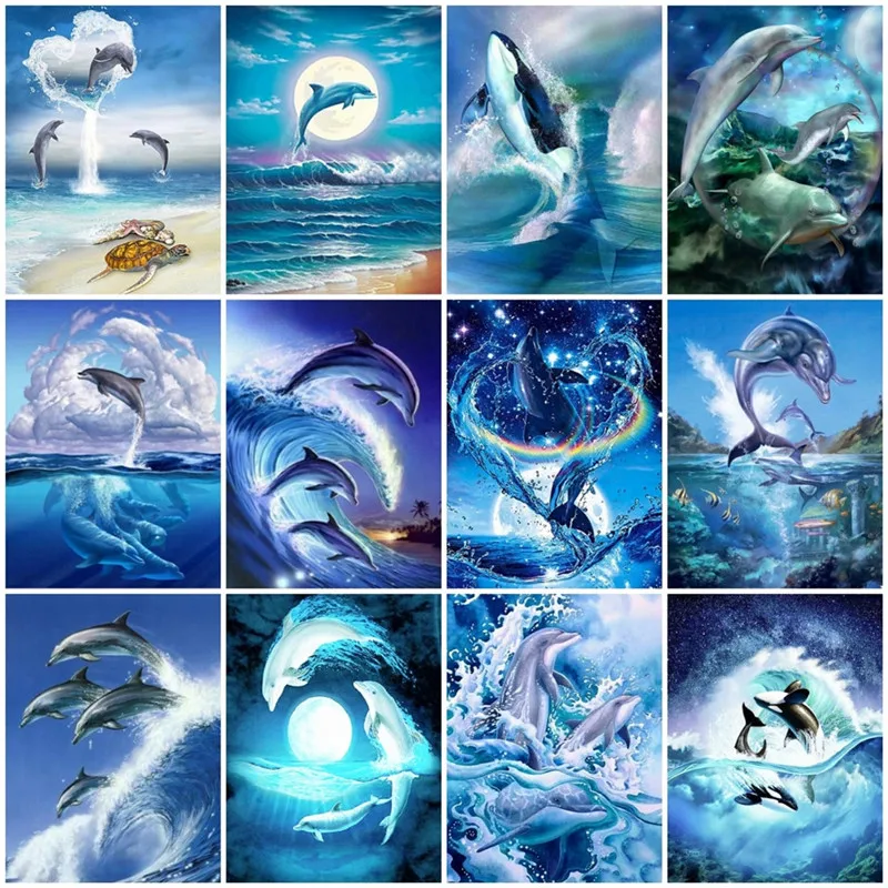 5D квадратная круглая алмазная живопись, Новое поступление, картина в виде дельфина, моря, стразы, алмазная вышивка, животные, мозаика, домашний декор