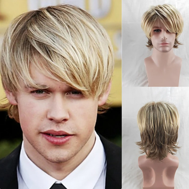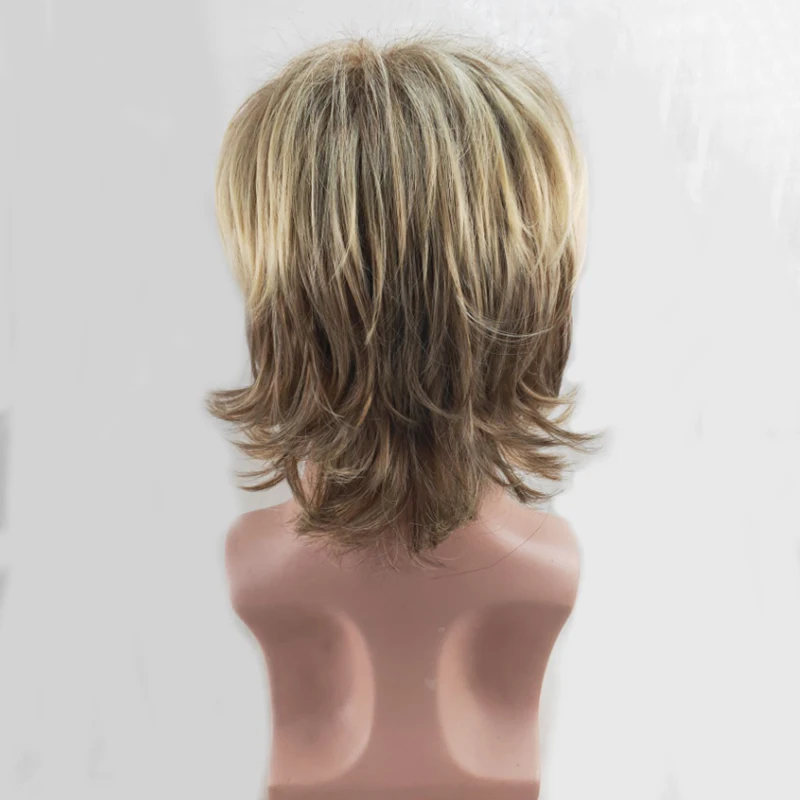 Парик HAIRJOY мужской из синтетических волос, Короткие вьющиеся термостойкие волосы с челкой, смешанные коричневые светлые