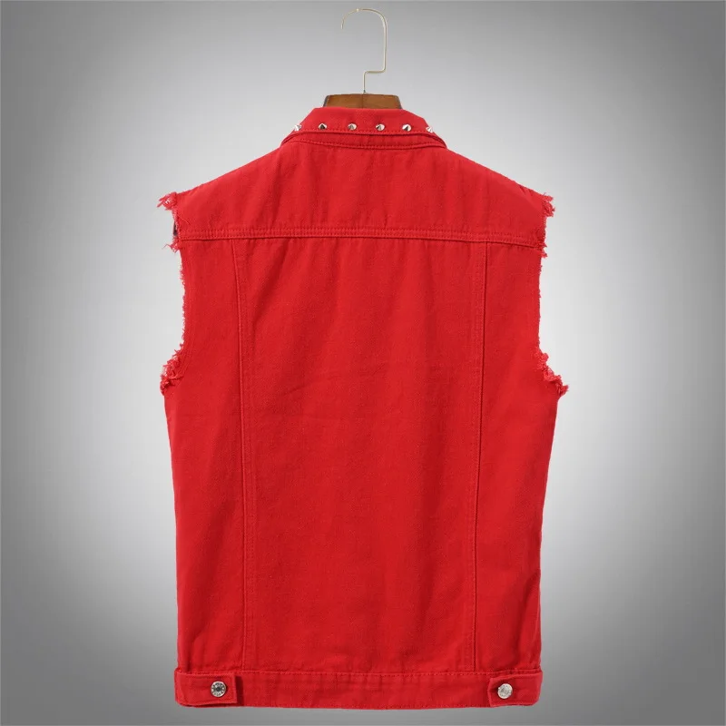 Жилет мужской джинсовый с заклепками, винтажный стираемый жилет из денима, Повседневная ковбойская безрукавка, весна-осень 2021