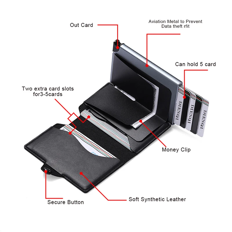 DIENQI Rfid держатель для карт, чехол для мужчин, минималистичные кошельки, Бизнес id кредитница, сумка для мужчин, тонкий металлический умный волшебный кошелек