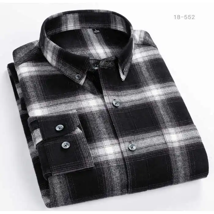 Мужская рубашка в клетку, с длинным рукавом и воротником на пуговицах