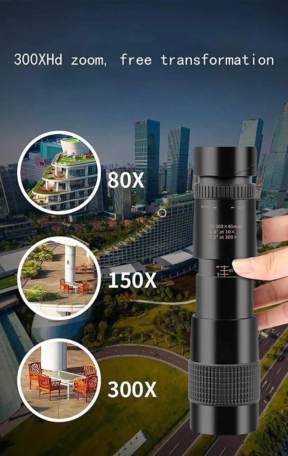 Телескоп 4K 10-300x40 мм, Монокуляр с супер зумом для телескопа, по...