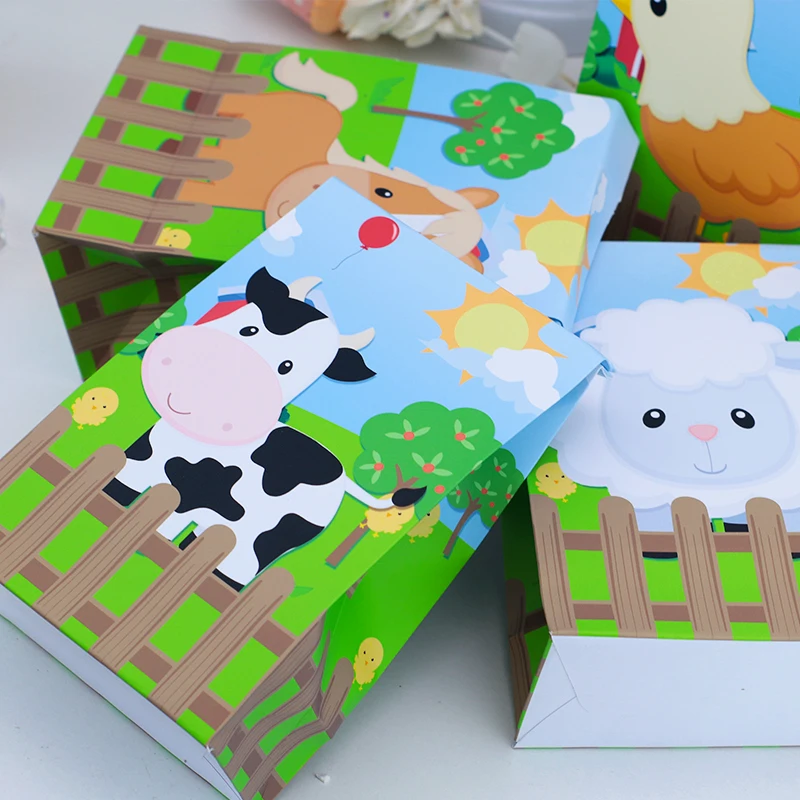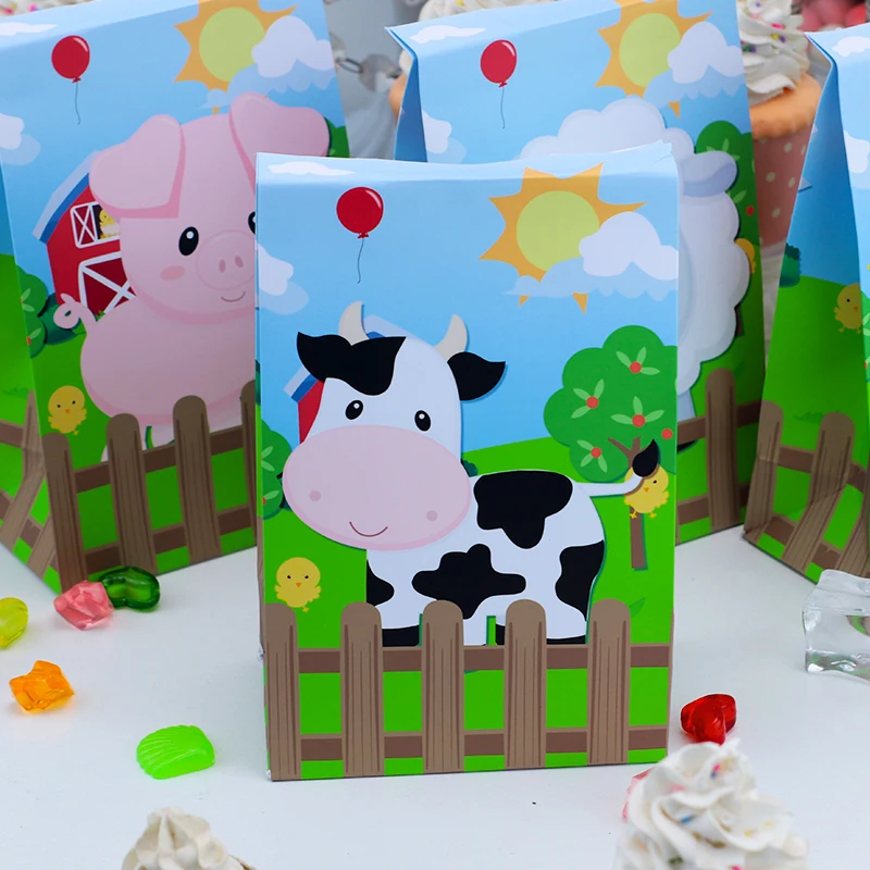 Подарочные коробки на ферму, мешки для конфет, товары для вечерние с животными, коробка для подарков, украшение для детского душа, овечка, свинка, корова, ферма, дом, декор на день рождения для детей