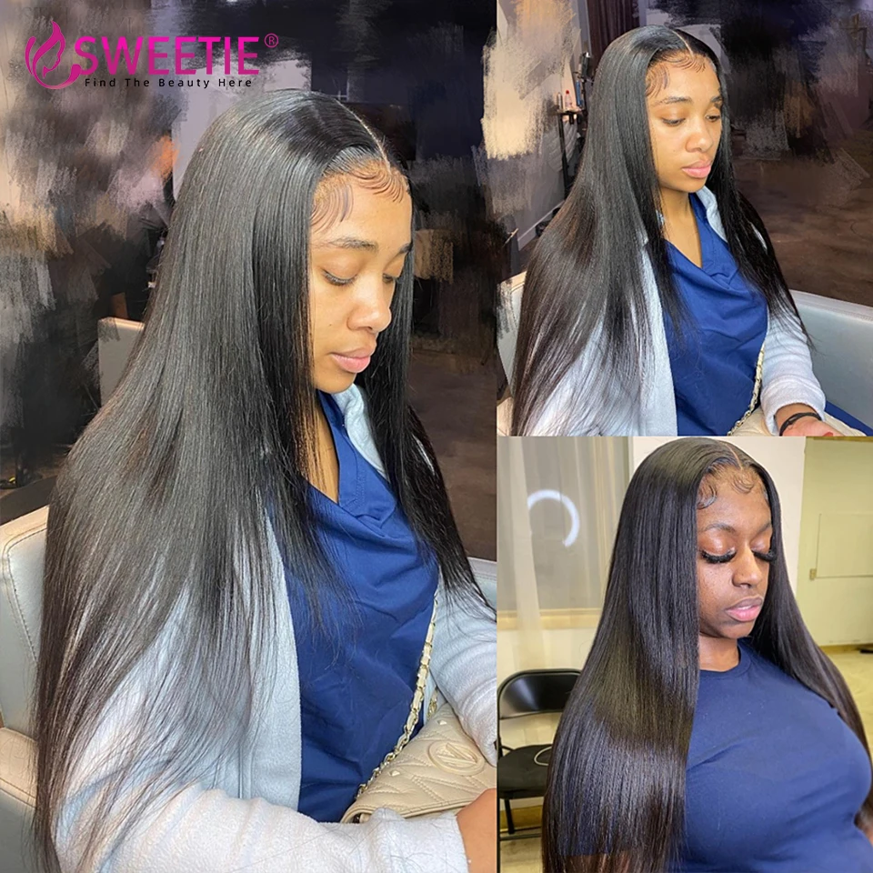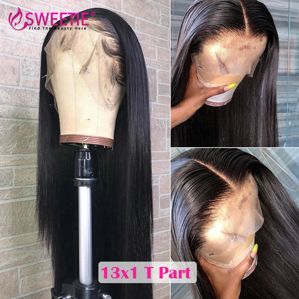 Прозрачный парик Sweetie из человеческих волос с T-образной частью, парик с коротким Бобом, 13x6x1, парик с кружевной частью, предварительно выщипанный прямой парик на сетке, 28 дюймов