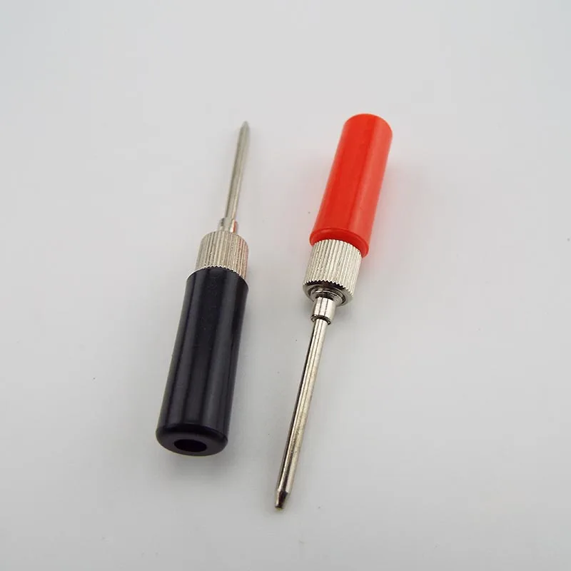 Эта пара Тестовых Инструментов может легко проткнуть кабель питания.Благодаря особой конструкции пружинного механизма он прост в использовании.Благодаря разъему 4 мм/0,16 дюйма его удобно подключать к тестовому щупу мультиметра.Широко применяется для технического обслуживания автомобилей, электрических испытаний или промышленных испытаний.