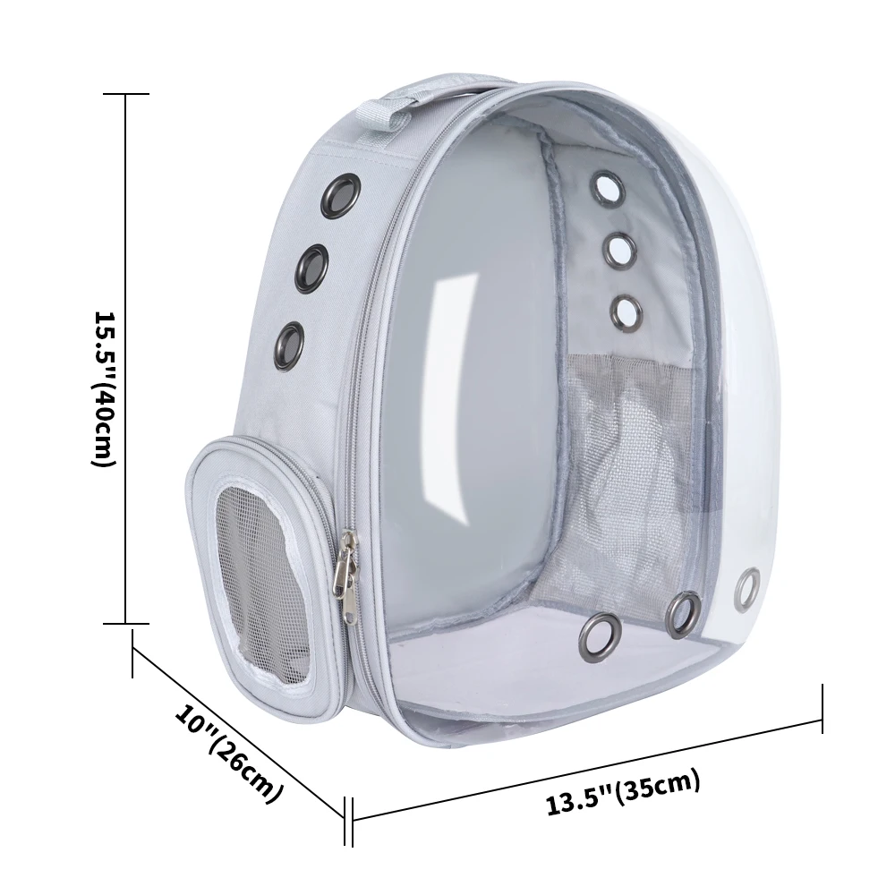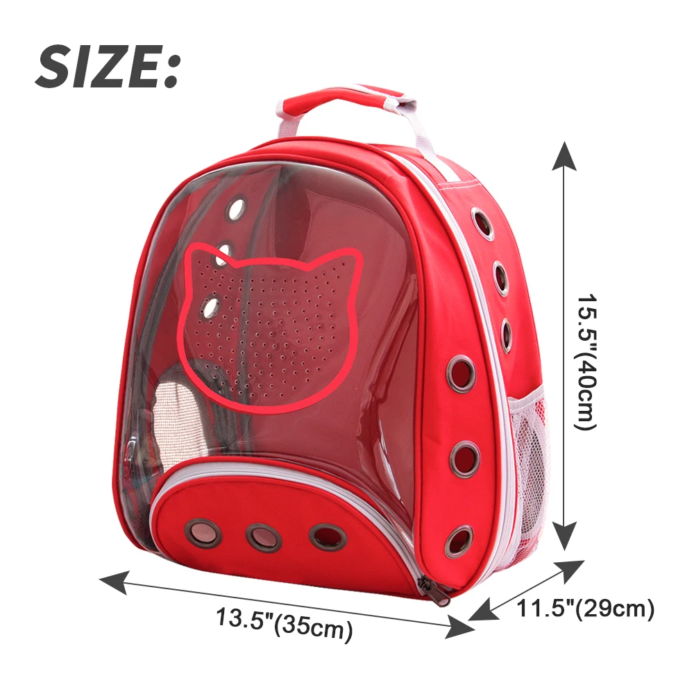 Особенности:1. Изготовлен из высококачественного материала, прочный, дышащий и удобный.2. Прозрачный дизайн, позволит вашему питомцу видеть солнечный свет и пейзажи со всего мира. Несколько вентиляционных отверстий на боковой части рюкзака обеспечивают достаточную циркуляцию воздуха, позволяют вашему питомцу дышать комфортно.3. Гладкая молния, легко открывается и закрывается, прочная и практичная.4. Эргономичный Расширенный плечевой ремень позволяет легко носить с собой вашего питомца. Идеально подходит для путешествий, прогулок, походов и прогулок.