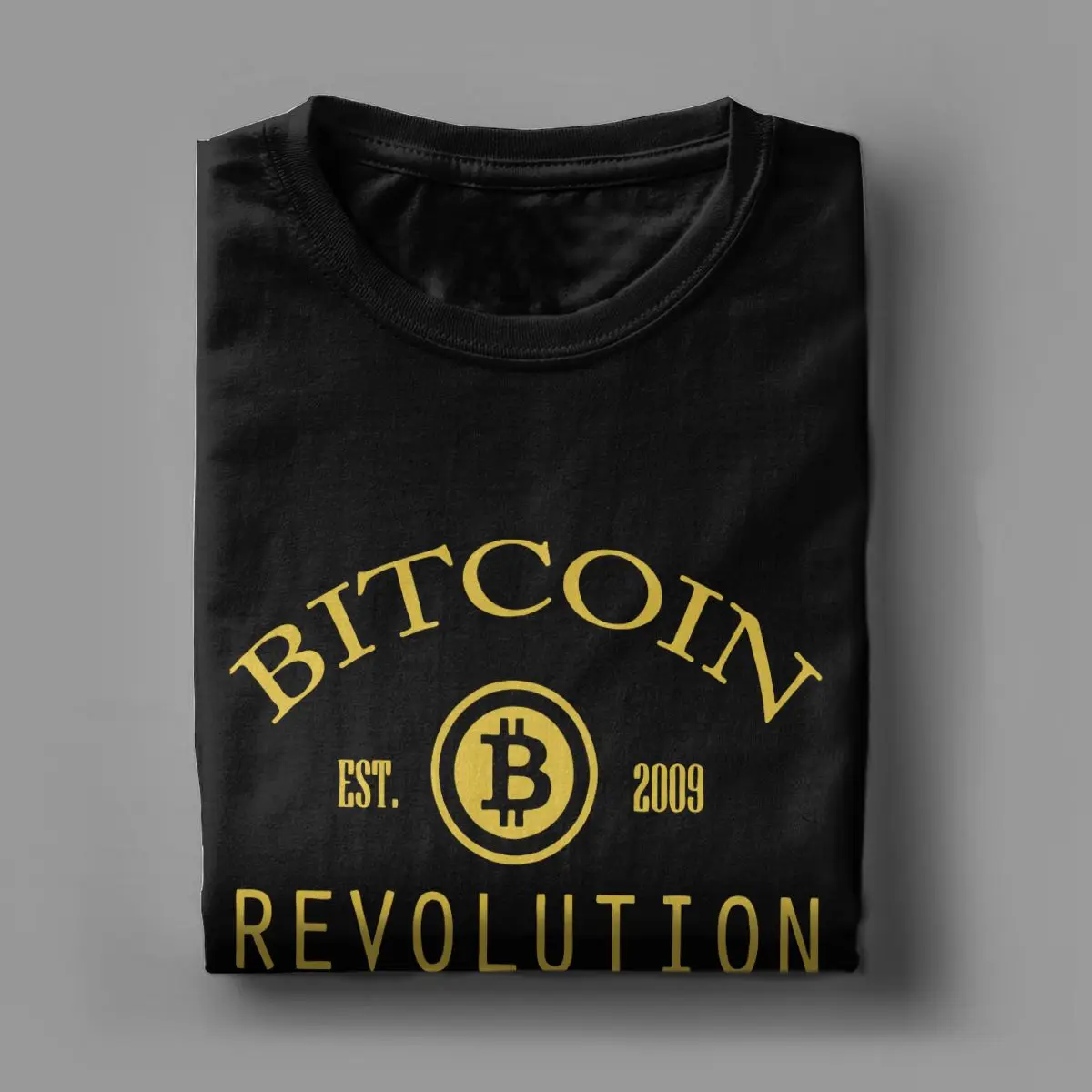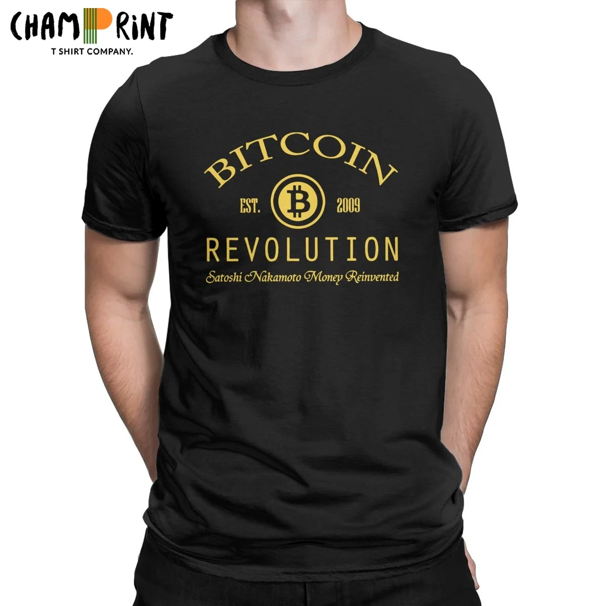 Футболка мужская с круглым вырезом, повседневная тенниска из чистого хлопка с принтом Биткоин революции криптовалюты, майка с коротким рукавом, идея для подарка