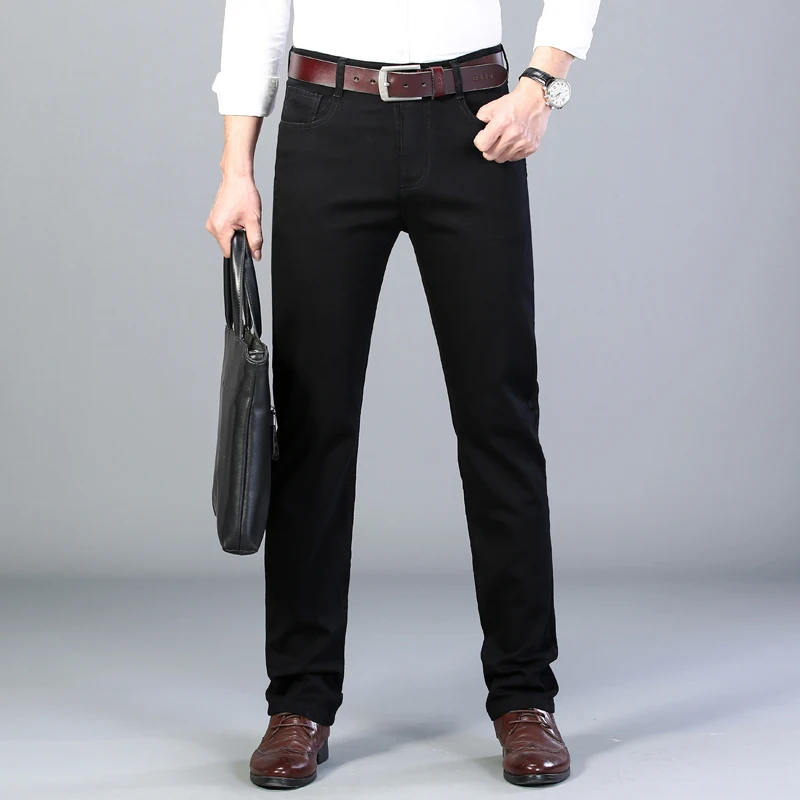 Классические усовершенствованные тянущиеся черные джинсы, новинка 2020, стильные деловые модные облегающие джинсовые брюки, мужские Брендовые брюки
