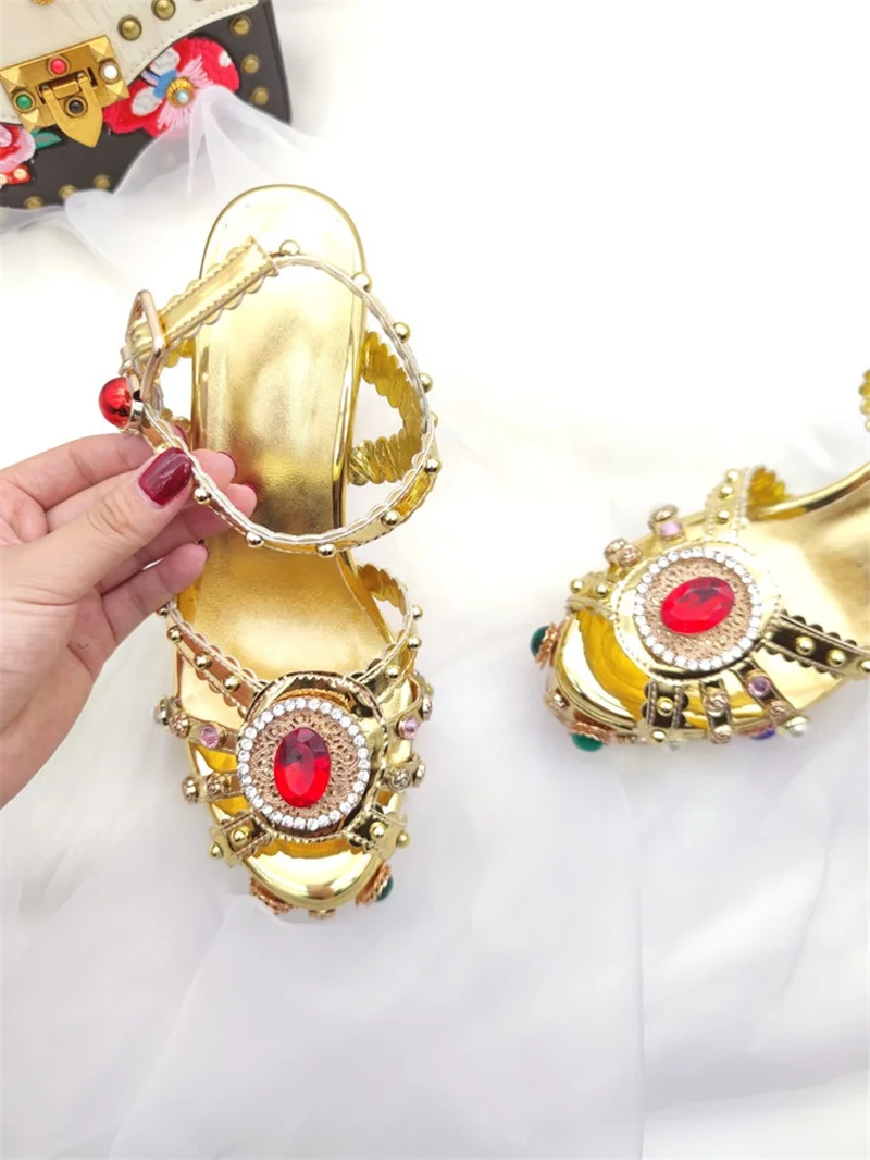 Женские босоножки в винтажном стиле ручной работы из бисера, открыт...
