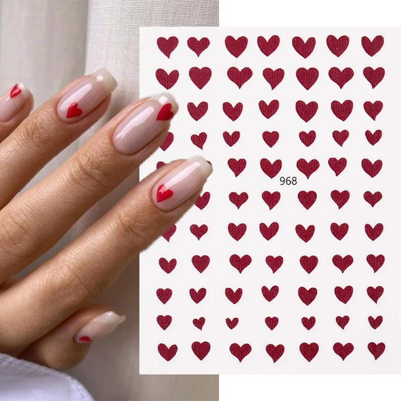 Наклейки для ногтей 3D с красным, черным сердцем, наклейки для ногтей с надписью Love, самоклеящиеся Слайдеры для ногтей, летние листья, наклейки для ногтей, обертывания для маникюра