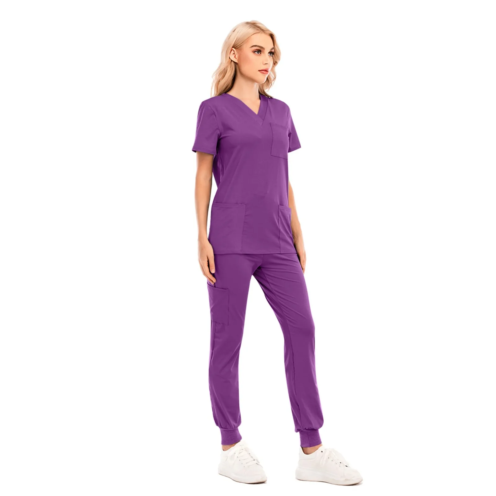 Больничная гигиена, одноцветная форма для медсестры, комплект, топ с короткими рукавами + штаны, рабочая одежда для медсестер с карманом, uniforme enfermera Z40