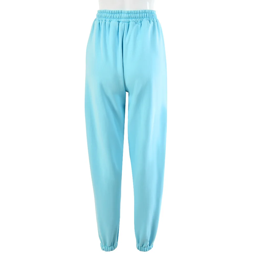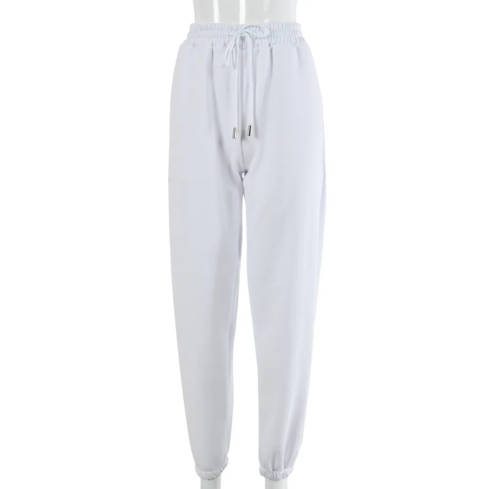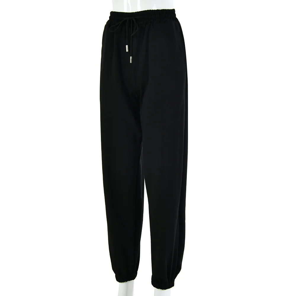 Женские модные повседневные брюки, брюки с высокой талией, эластичные джоггеры, однотонные спортивные брюки со шнуровкой, спортивные брюки для фитнеса