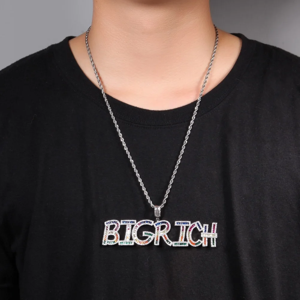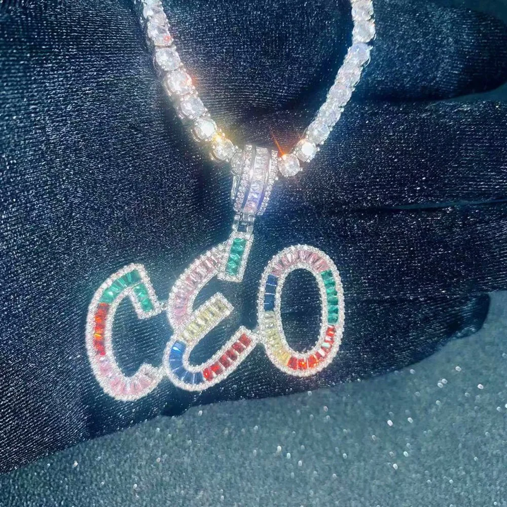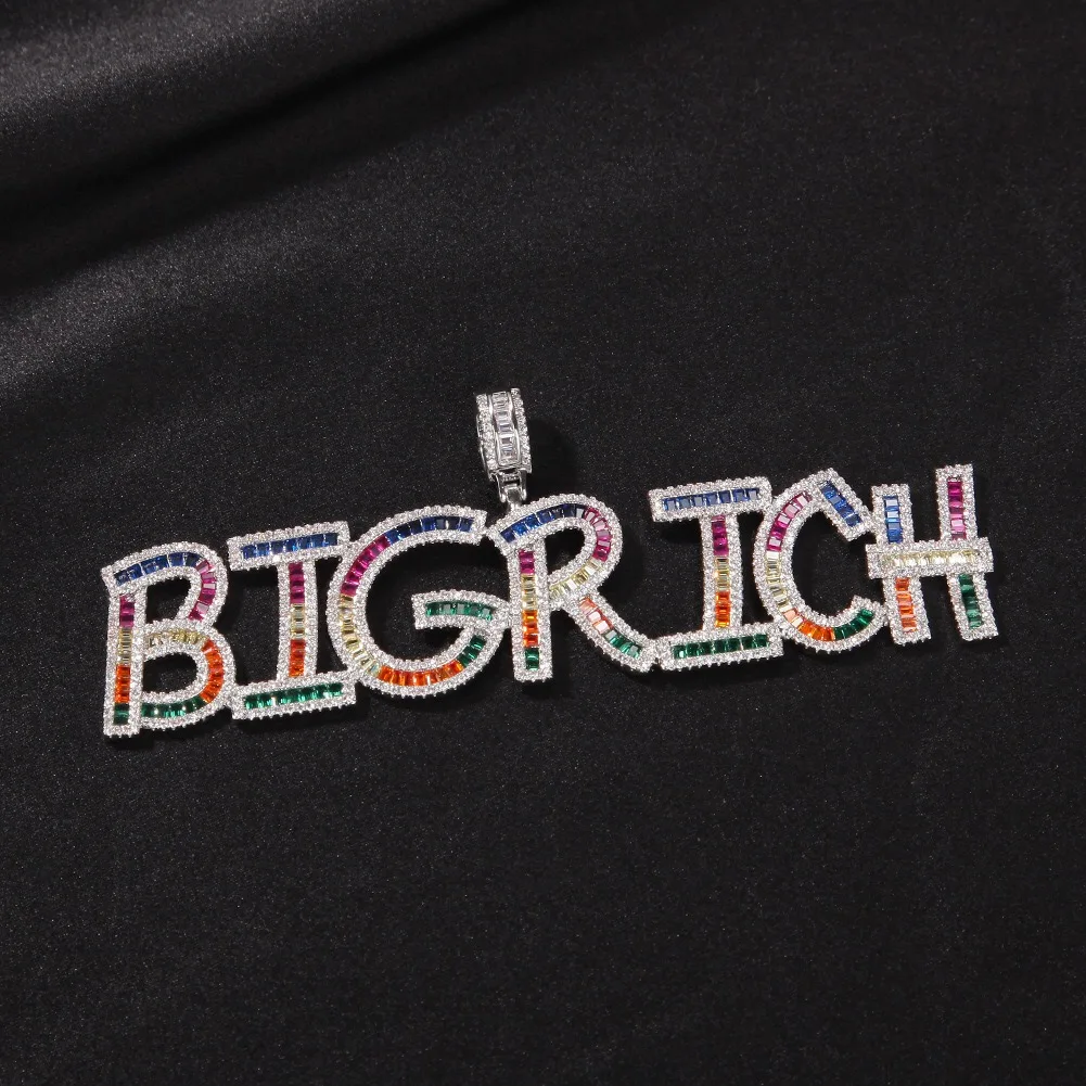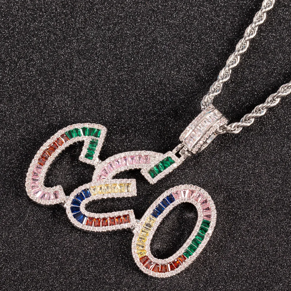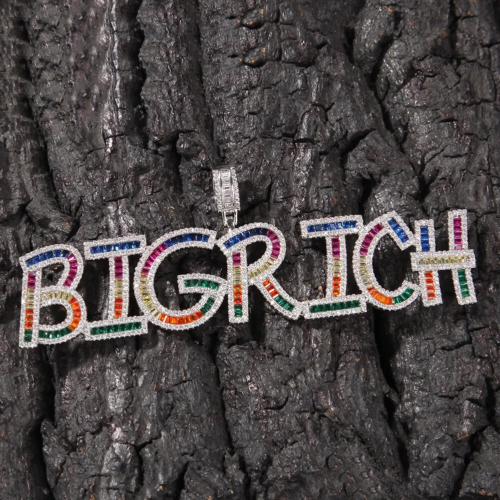 Обычай имя Цветной Циркон багет буквы номер кулон АААА циркония Мужская хип-хоп ожерелье цепь рок ювелирные изделия