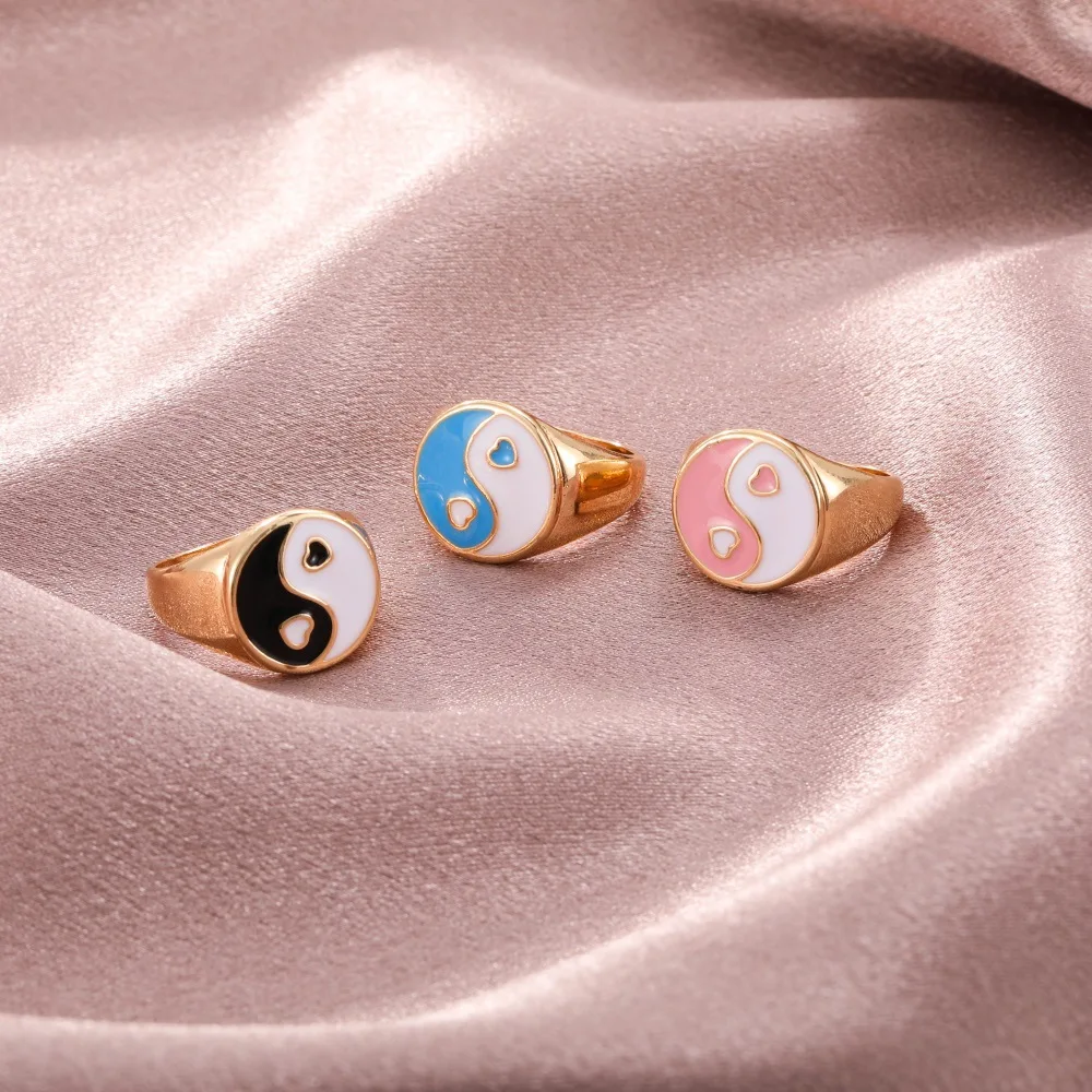 Эмаль Tai Chi Ying And кольца Янг для женщин стиль Харадзюку Ретро панк искусственная кожа Свадебная лучшая девушка