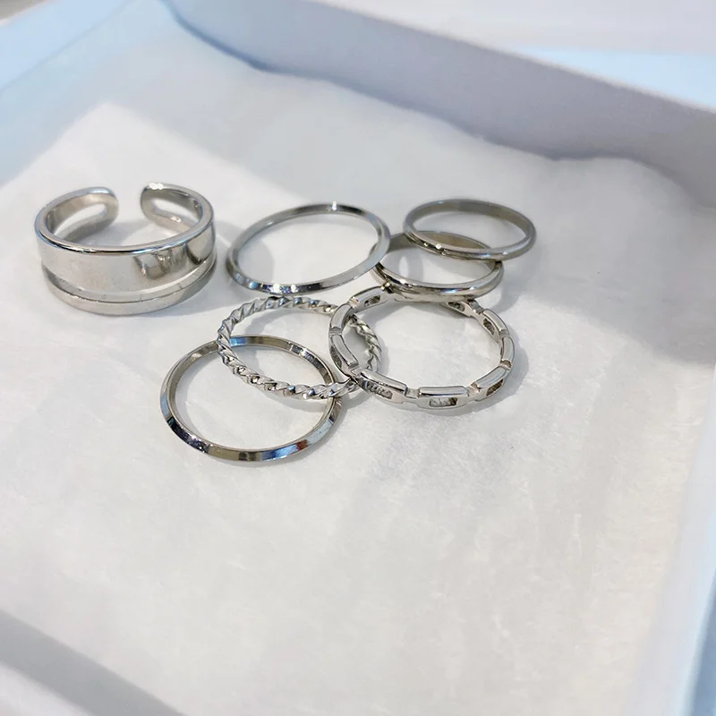 7 шт.компл. корейский модный смешанный минималистичный набор колец ...