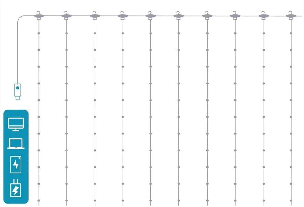 Наименование товара: Светодиодный светильник для занавесок из серебристой медной проволокиМатериал: пластик + серебряная медная проволокаРазмер: 3*3 м с 300 светодиодами3*1 м со 100 светодиодамиВодонепроницаемость: IP65Питание от: USBНапряжение: 5 В постоянного токаСветильник источник света: светодиодныйСветодиодный Количество: 100 / 200 / 300 светодиодный sСветодиодный цвет: теплый белыйСрок службы: 50000 часовПереключатель 8 режимов: на USB или пульте дистанционного управленияС пультом дистанционного управления: Да