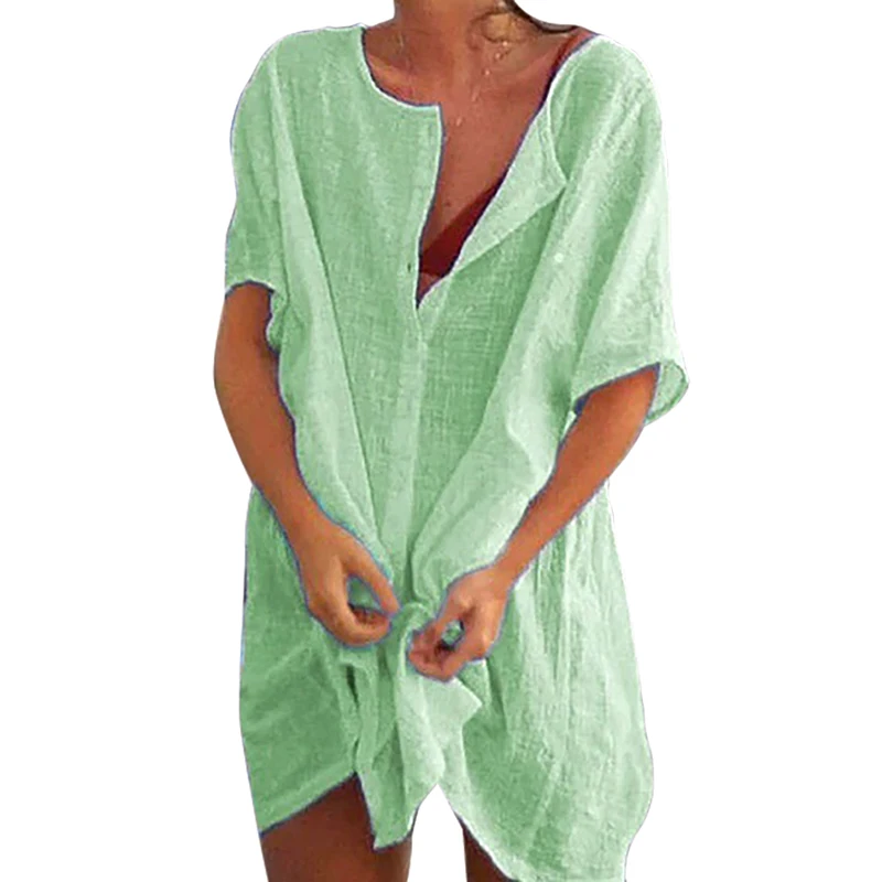 Женский купальник 2021, накидки, однотонный купальник, пляжная одежда, повседневное свободное мини-платье, Пляжное платье с коротким рукавом