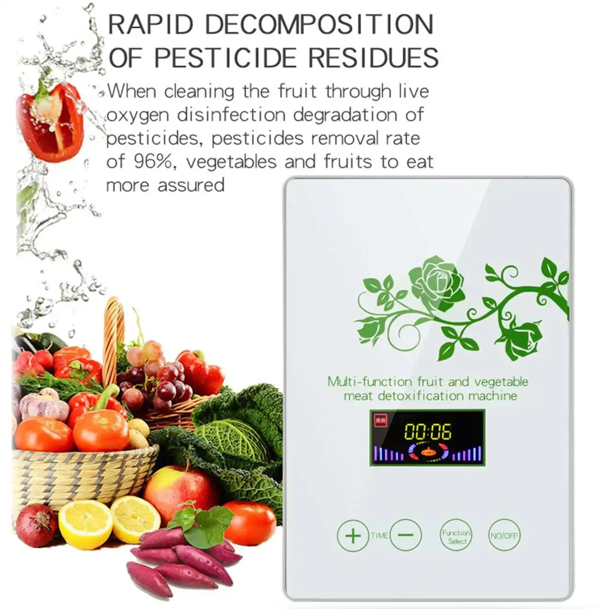 Особенности:-Искусство поддержания здоровья, высокая эффективность деоксигенации отражается не только на очистке фруктов и овощей, но и на более разнообразном использовании.-Остатки пестицидов быстро разлагаются. При мытье фруктов в vivo; Дезинфекция кислорода разлагает пестициды, скорость удаления пестицидов составляет 96%, а фрукты и овощи могут быть съедены более уверенными.-Очищает и разлагает бактерии, скрытые в фруктах и овощах. Аэратор использует кислород для разложения вредных веществ в фруктах и овощах, эффективно устраняя специфический запах, радиационное загрязнение и возможные бактерии от биологического загрязнения.-20 минут, чтобы убить бактерии в мясе и удалить добавки.-Активная стерилизация кислорода, очистка воздуха, эффективное удаление паров в помещении, краски, специфического запаха и других запахов, очистка воздуха и сохранение свежего и естественного воздуха в помещении.-Подвесной дизайн, экономит пространство, компактный и не занимает площадь.-Интеллектуальная ЖК-панель, машина использует светодиодный экран для отображения рабочего состояния.-Настенный дизайн отверстия, с настенной функцией, решает проблему кухонного пространства.-Закаленное стекло, простая атмосфера, прочная панель из закаленного стекла.-Когда живое кислородное отверстие находится в контакте с силикагелем, не устанавливайте гелевые тюбики из силикагеля, когда пространство непосредственно очищено и дезинфицировано.Характеристики:Входное напряжение: 110-60 Гц, 220-50 ГцНоминальная мощность: 10 ВтВилка: штепсельная вилка США, штепсельная вилка европейского стандарта (опция)Выход озона: 200 мг/ч, 400 мг/ч, 600 мг/ч (опция)Размер продукта: 190x50x28 0 мм/7.5x2x11''Посылка включает в себя:1 x Стиральная машина для фруктов и овощей1 х трубка1 х Руководство