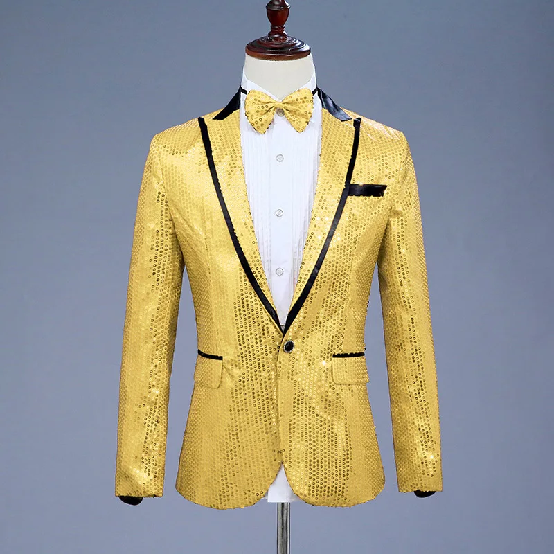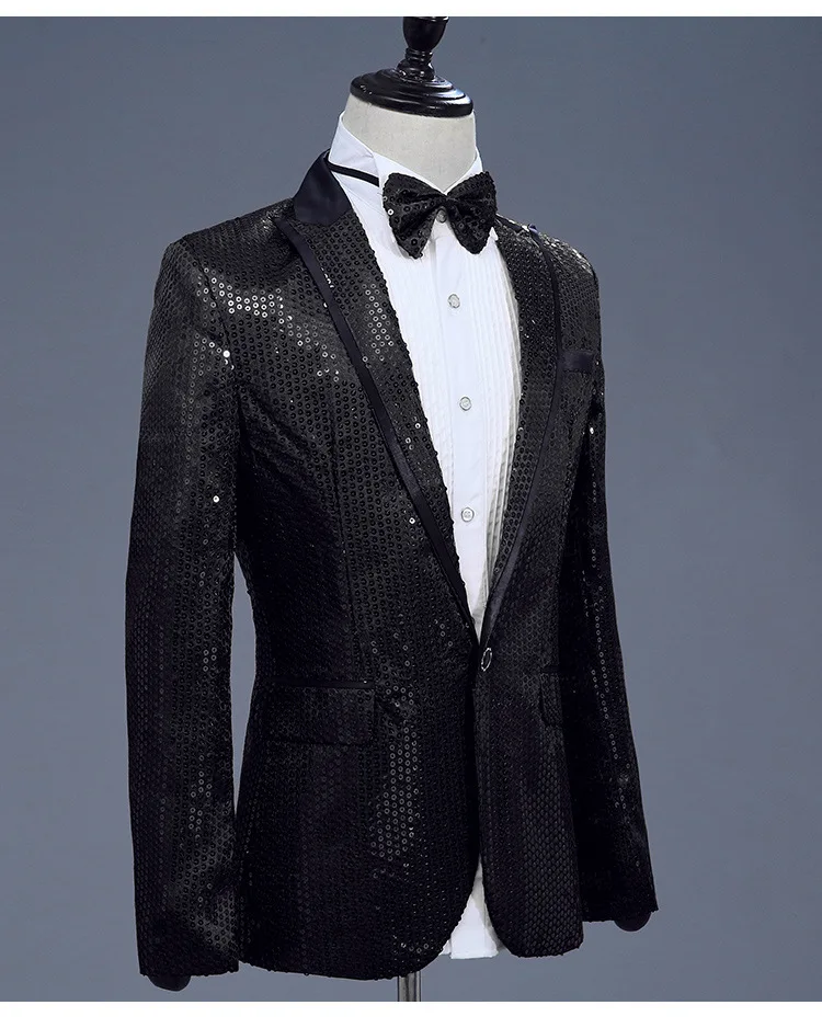 Для мужчин s пайетками костюм, Блейзер, пиджак, Для мужчин Вечеринка, свадебный банкет DJ сценический костюм Homme с зазубренными лацканами на одной пуговице блейзер с бантом