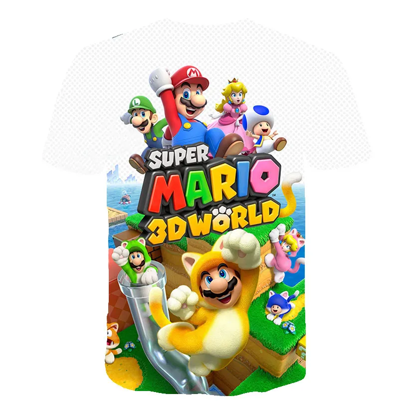 Детская футболка для игр Super Mario-Bros Одежда для маленьких мальчиков и девочек детская одежда футболки для мальчиков детские топы для девочек Футболка персик Луиджи