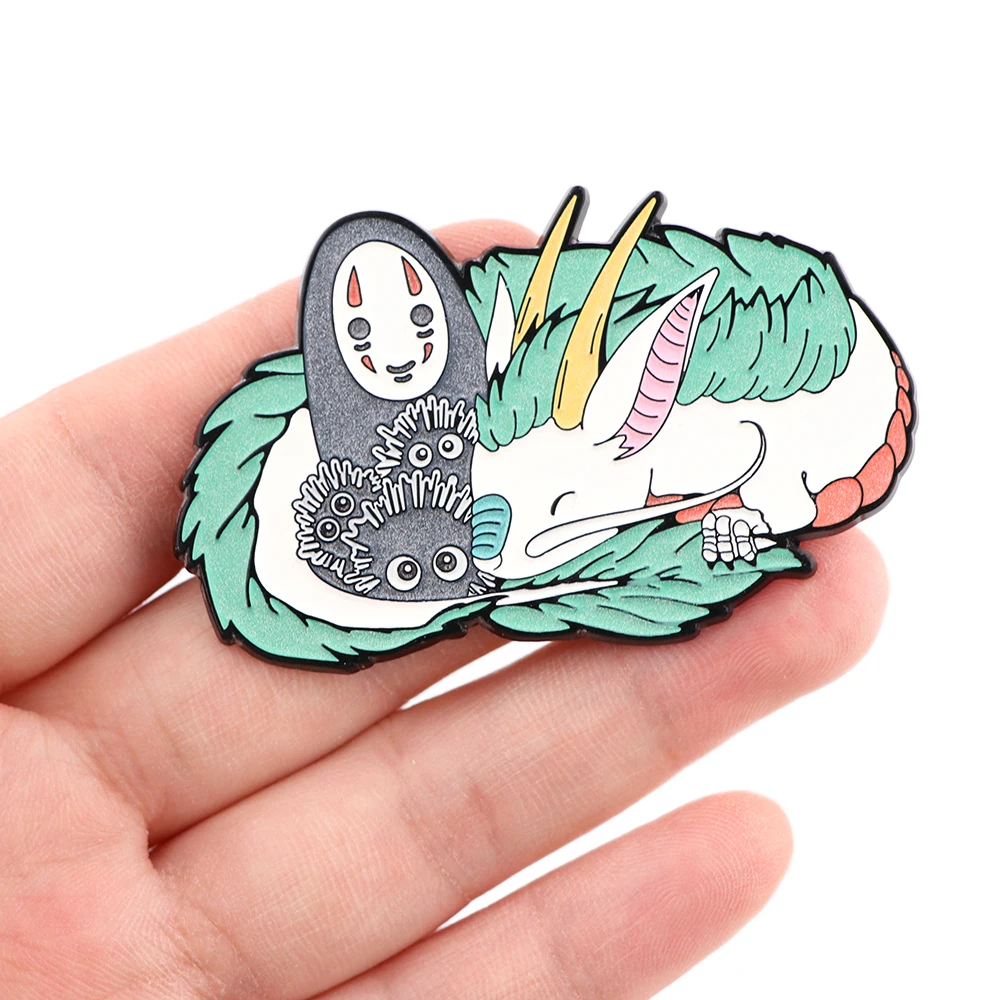 E3271 жесткая эмалированная булавка с белым драконом, Милая брошь в виде мультяшных животных из аниме без лица, коллекция фанатов, значок, уникальный подарок