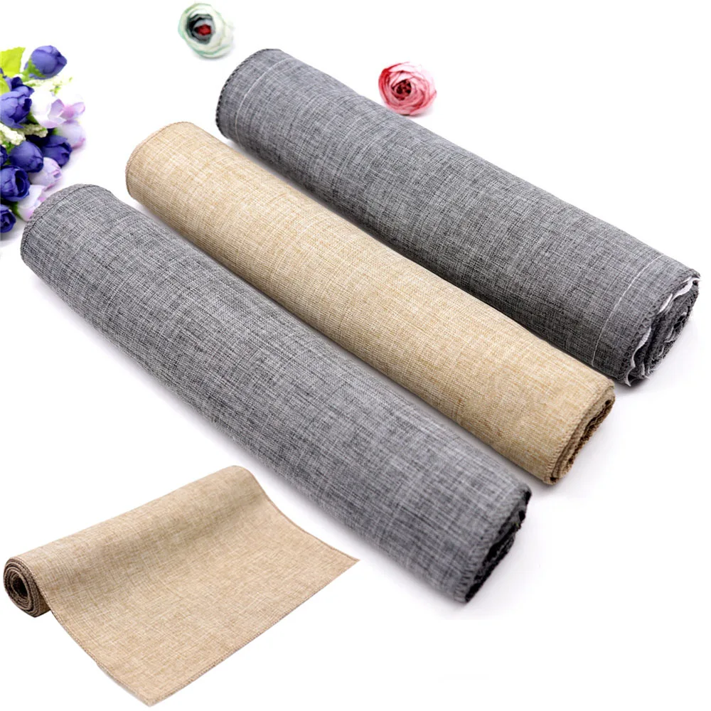 Скатерть-Настольная дорожка из мешковины Винтаж натуральный серый хаки имитация джута Лен Рождество Свадебные Скатерти украшение стола ресторана