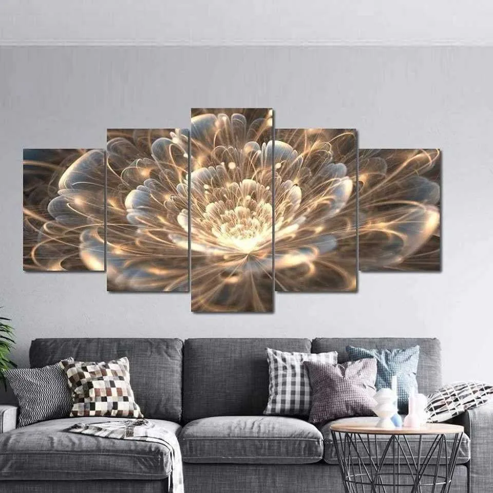 Алмазная 5d картина сделай сам 5 шт., полное квадратное искусство на стену, для гостиной, офиса, украшение, растягивается с золотыми лучами, Фрактальный цветок