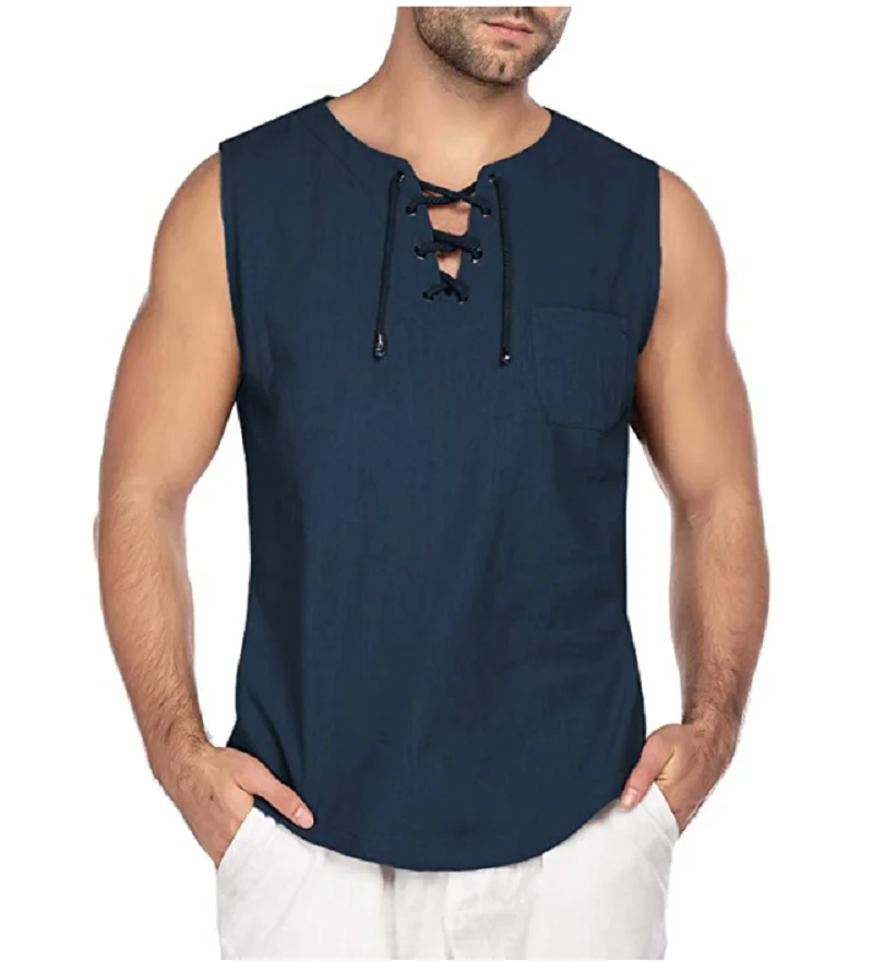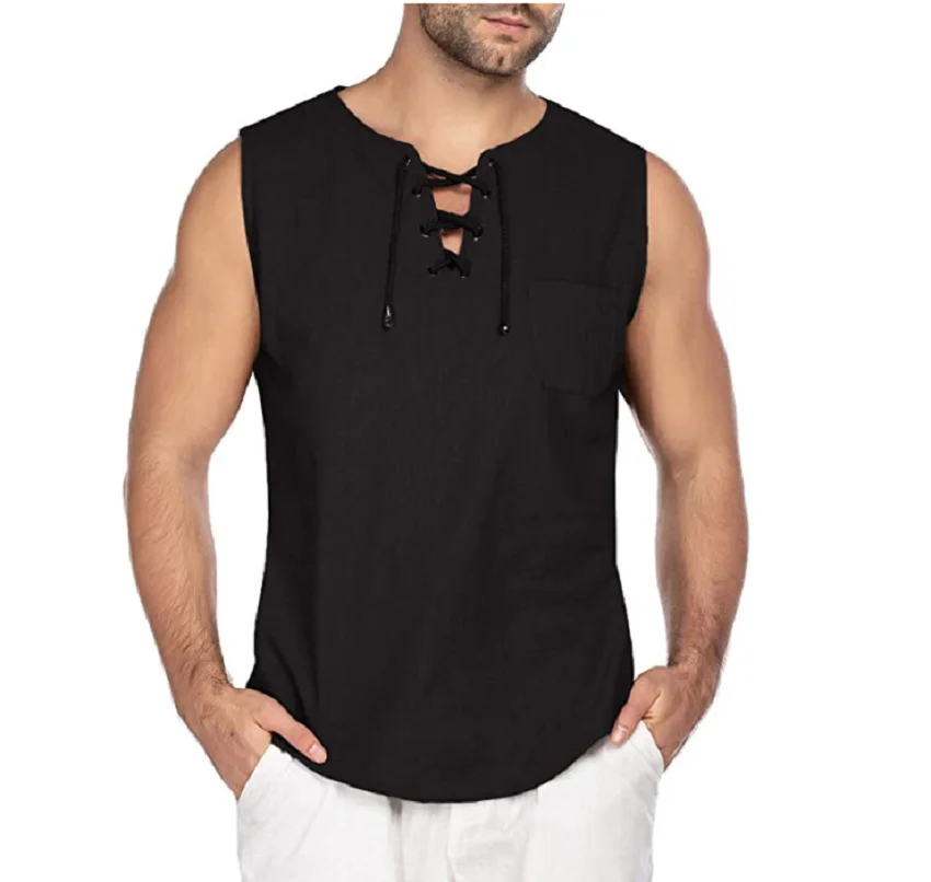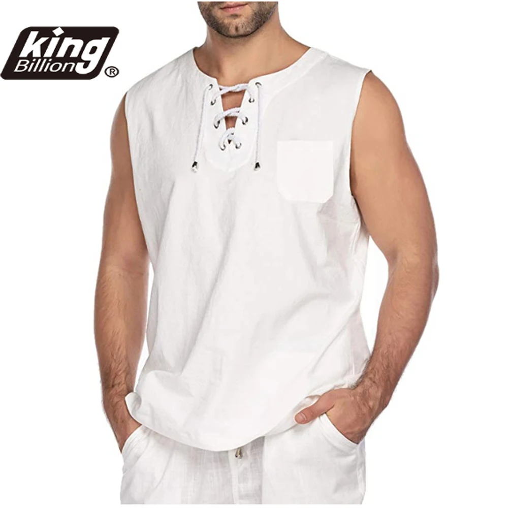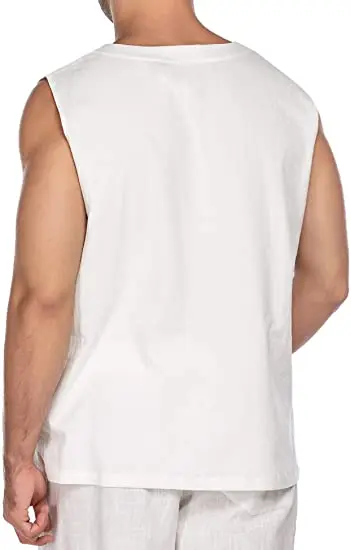 Мужская свободная майка из хлопка и льна, с круглым вырезом