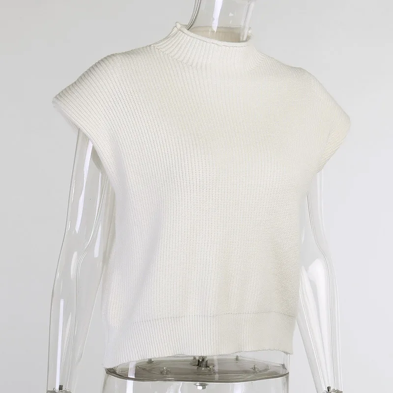 Женский вязаный свитер-водолазка без рукавов, с наплечниками