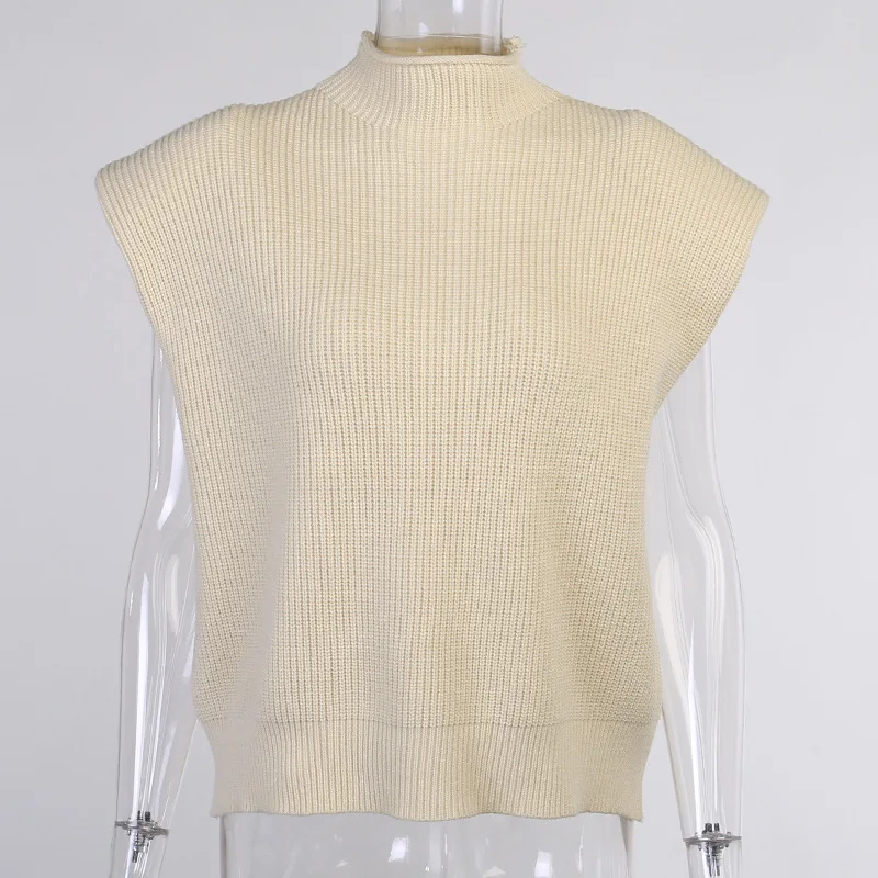 Повседневные женские модные топы элегантные женские с высоким, плотно облегающим шею воротником свитер жилет без рукавов с плечевыми накладками трикотажные пуловеры на осень джемпер