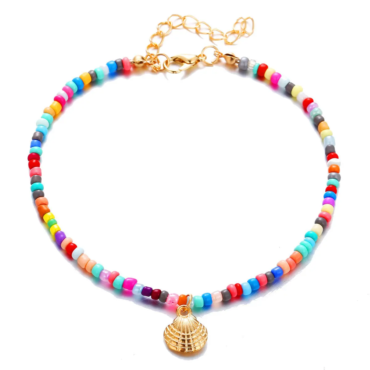 Boho ножной браслет летний браслет, расшиты разноцветными бусинами в виде ракушки браслет под босоножки босиком пляж ног свадебных ювелирных изделий оптом J06