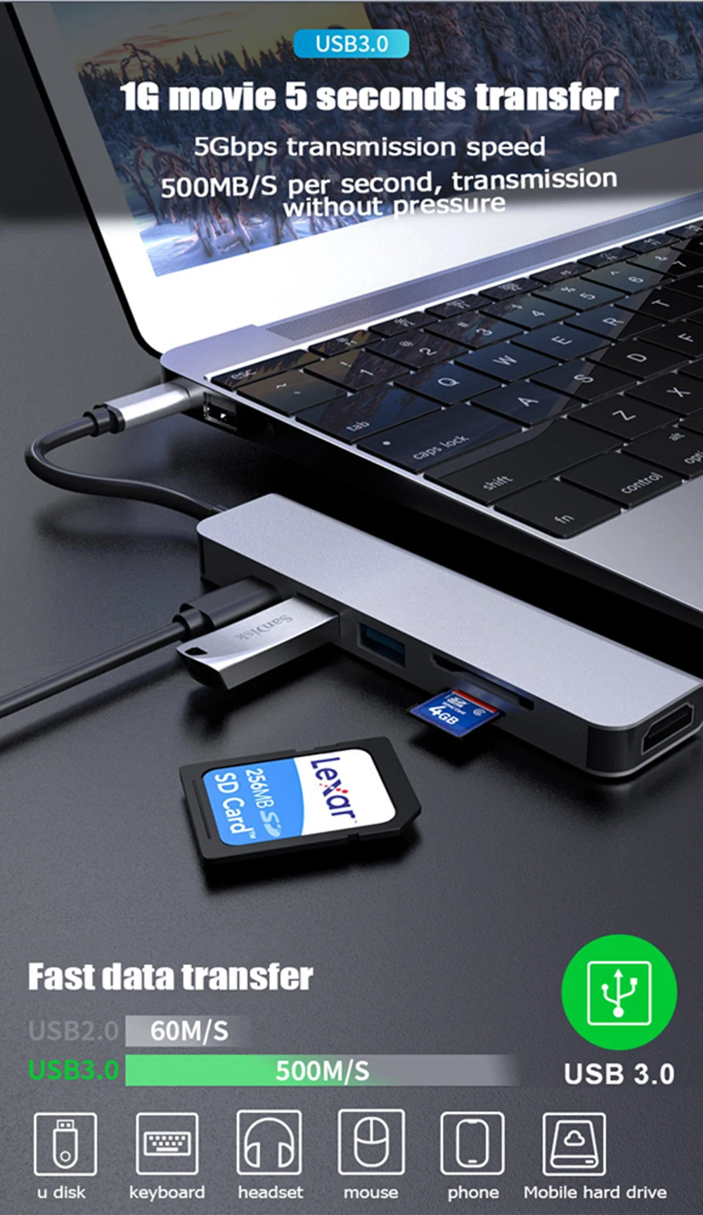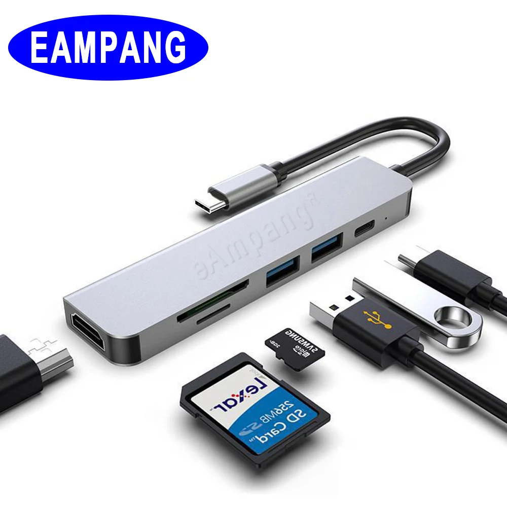 USB хаб все в одном USB C HUB адаптер 6 в 1 взаимный обмен данными между компьютером и периферийными устройствами C до USB 3,0, совместимому с HDMI док-станция для MacBook Pro iPad Nintendo Switch USB-C Тип C разветвитель