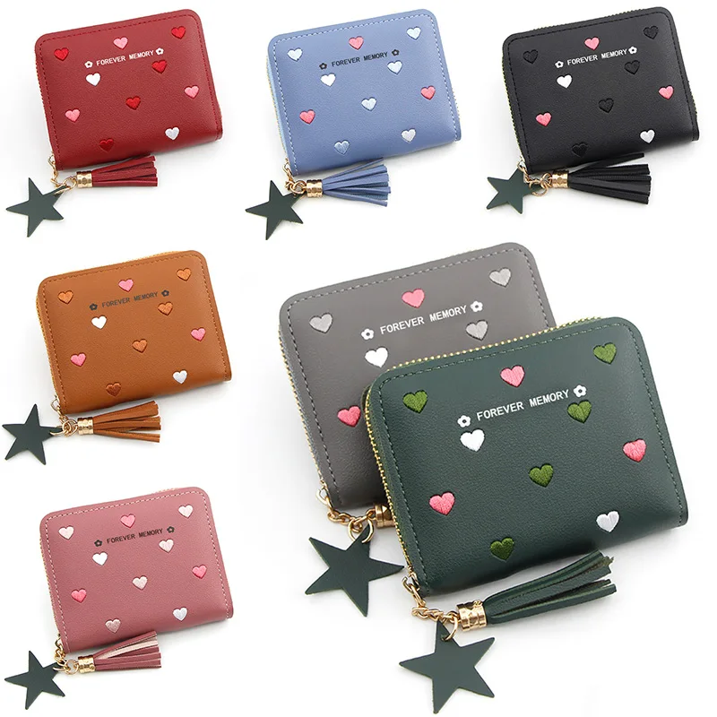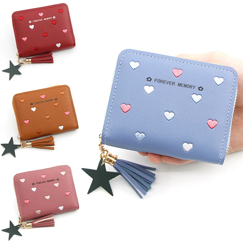 ОписаниеТип товара: кошелькиПрименимый Пол: ЖенщиныМатериал: из искусственной кожиСкладка для денег: 1 сложениеТип застежки: молнияДлина кошелька: короткаяТип узора: сердцеВнутренняя структура упаковки: 4 отделения для карт, 2 папки для банкнот, 1 место для сменыПовод: повседневный, Повседневный, путешествия, шоппинг, школа, вечерние, подарки и т. д.Размер: 11*9*2 смЦвет: как показаноПримечания:Из-за разницы в освещении и настройках экрана цвет изделия может немного отличаться от изображения.Возможны незначительные различия в размерах из-за различий в измерениях вручную.Посылка входит:1 * кошельки