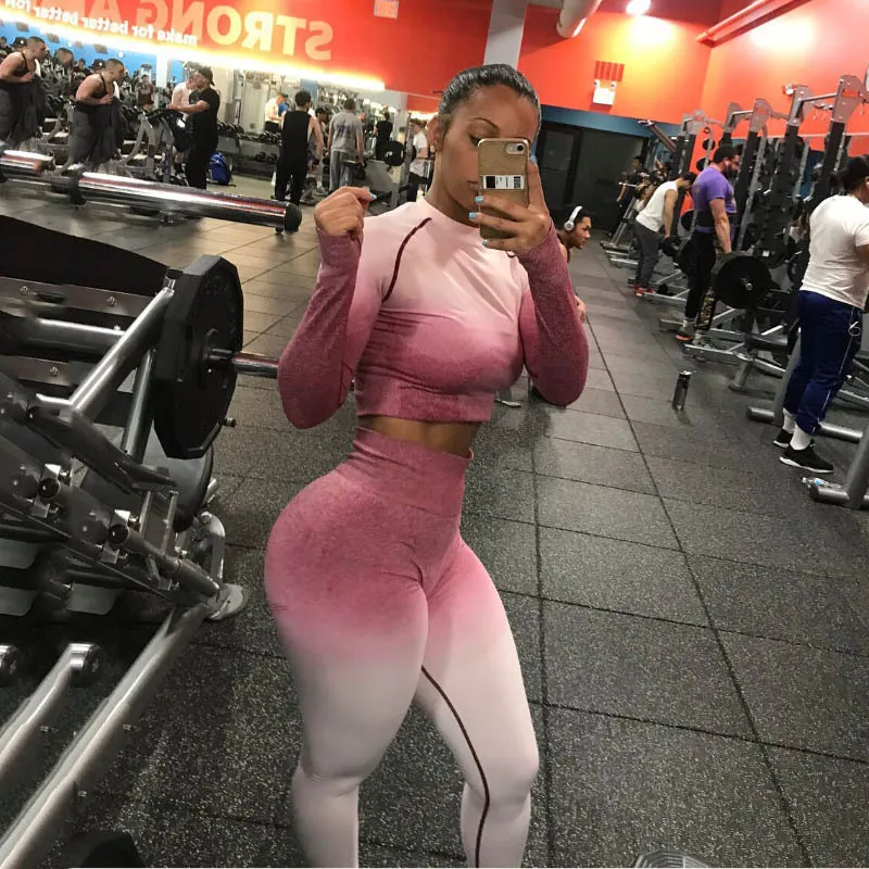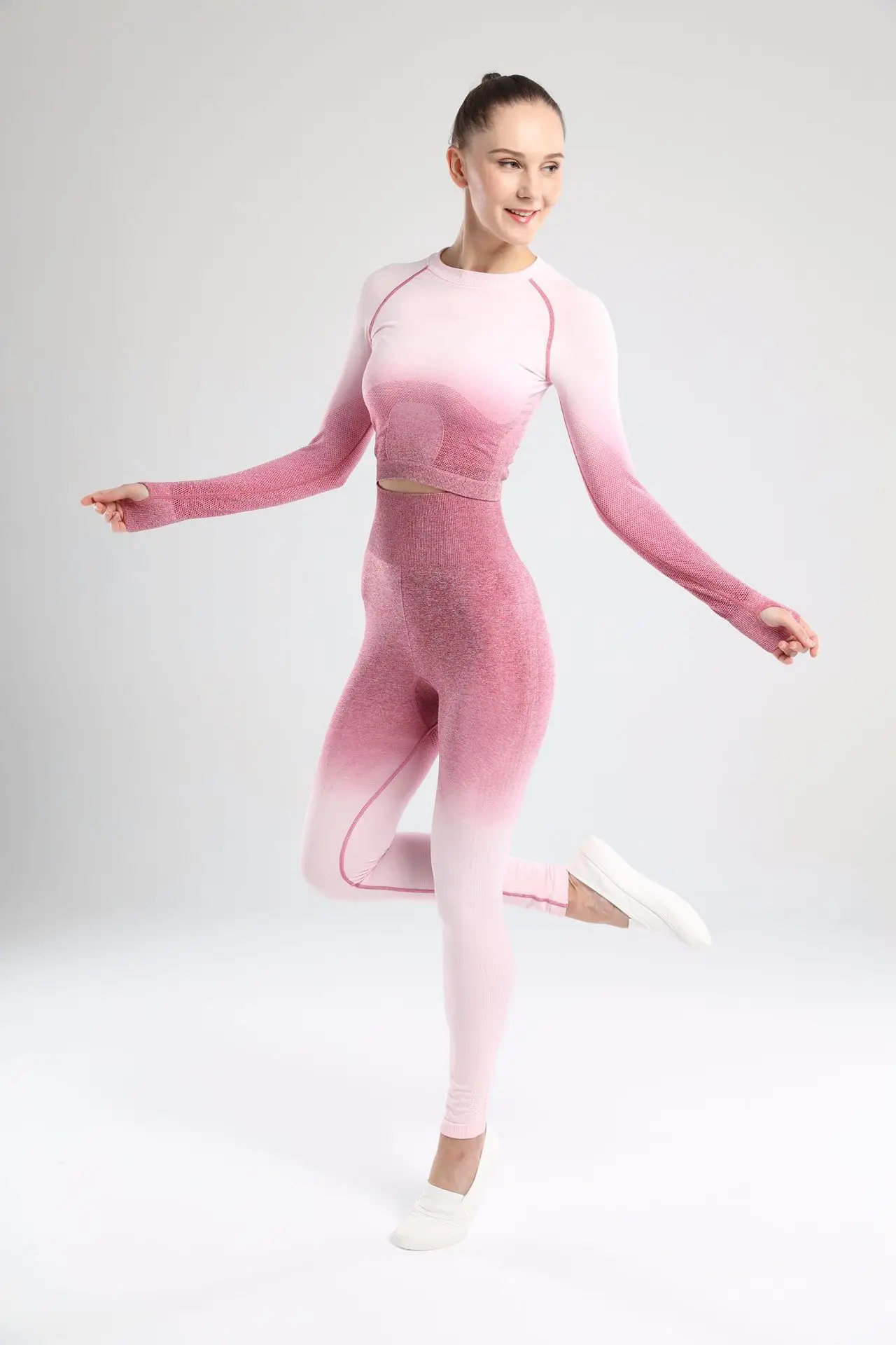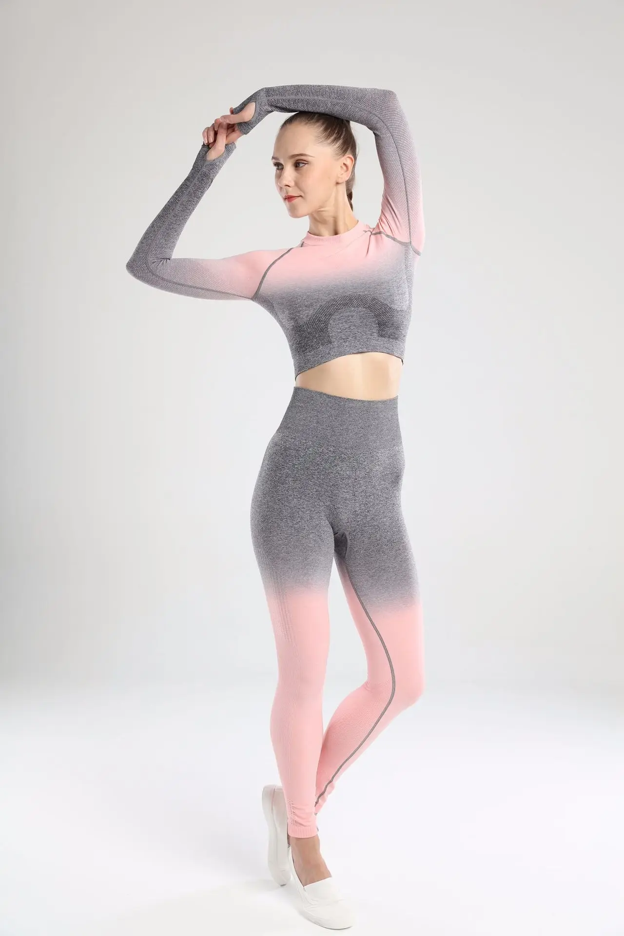 Градиентный бесшовный Женский спортивный костюм для фитнеса, Женски...