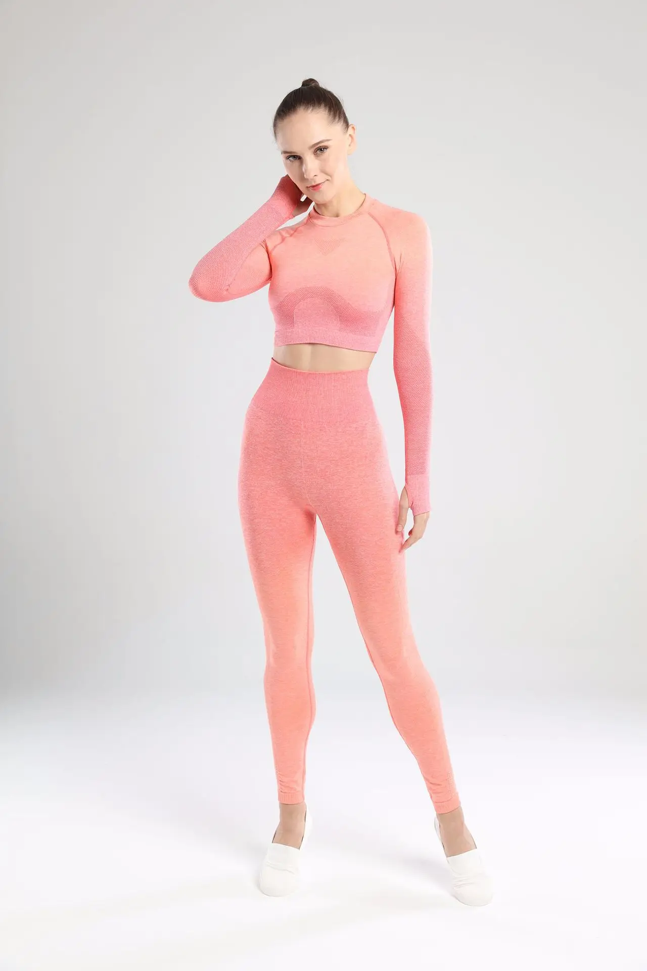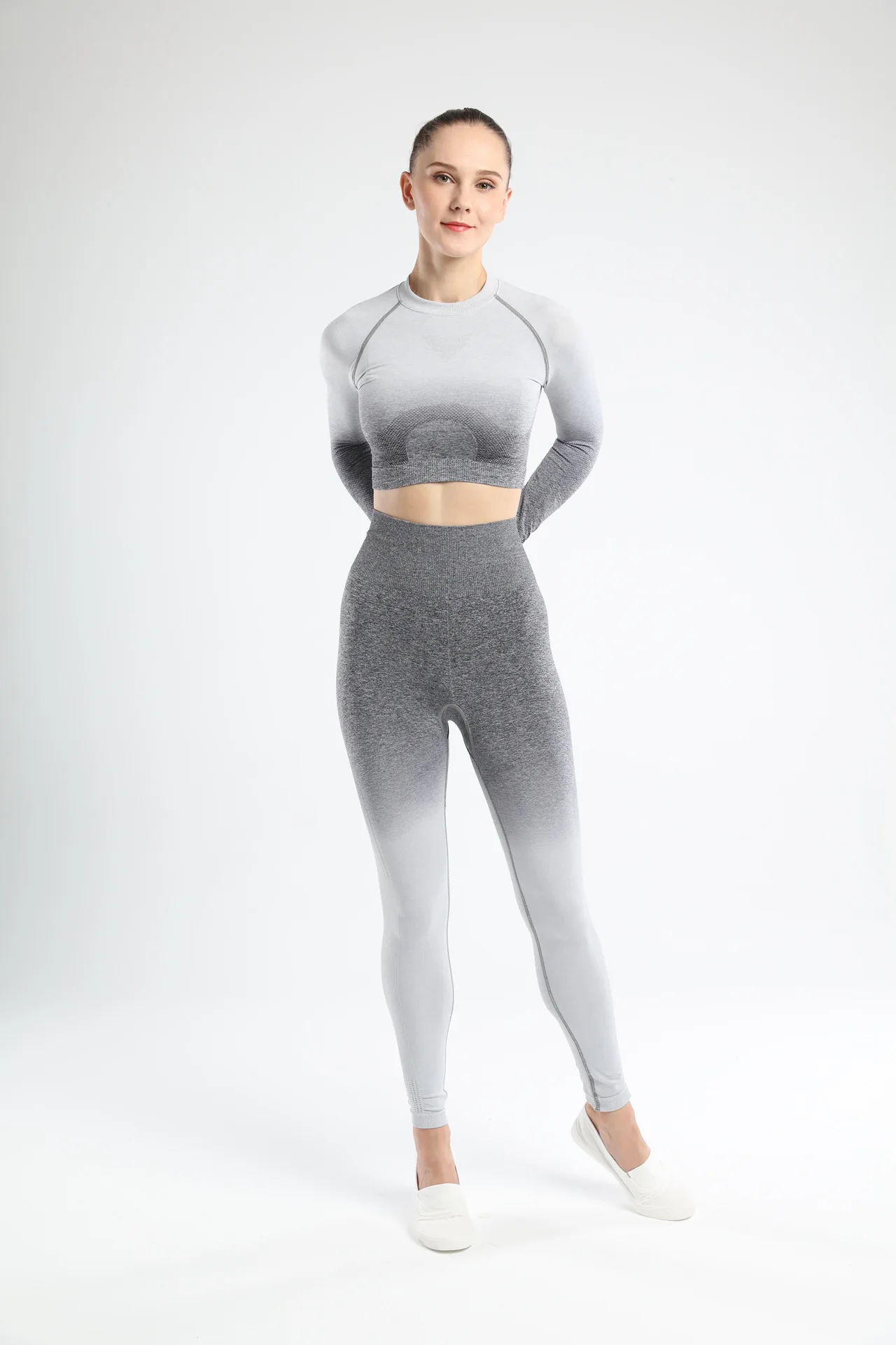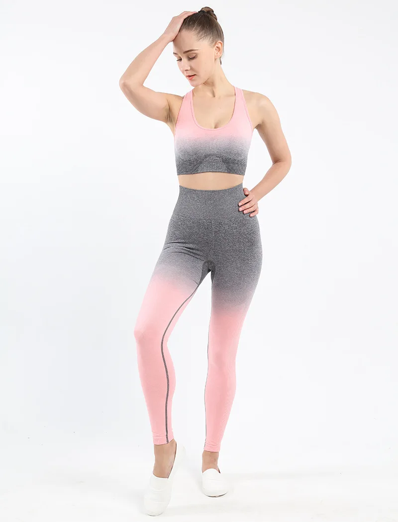 Градиентный бесшовный Женский спортивный костюм для фитнеса, Женски...