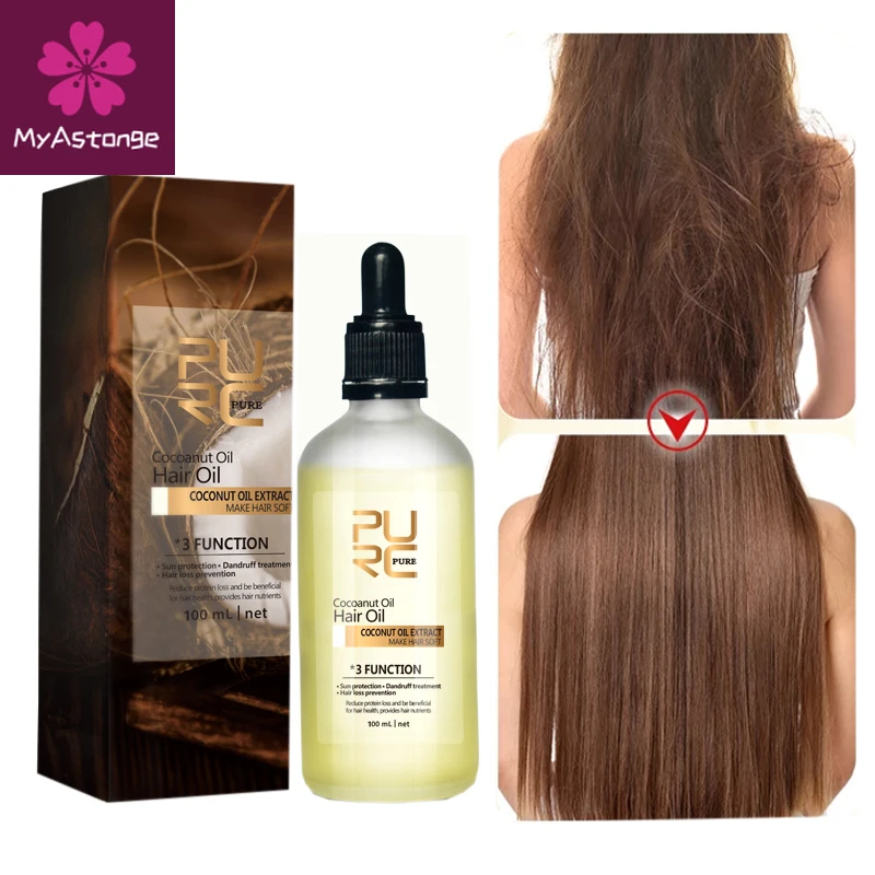 Кокосовое масло PURC против выпадения волос, сглаживание, восстановление, сглаживание, лечение перхоти и кожи головы, уход за волосами, 100 мл