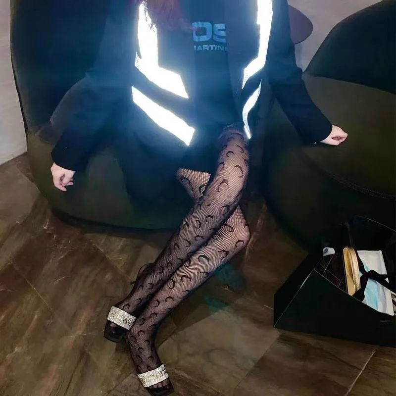 Черные носки с изображением Луны для женщин ажурные пикантные дизайнерские открытые чулки Samll сетки прелестные модные туфли для девочек; Тонкие носки женщины