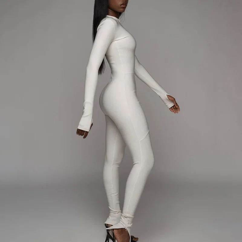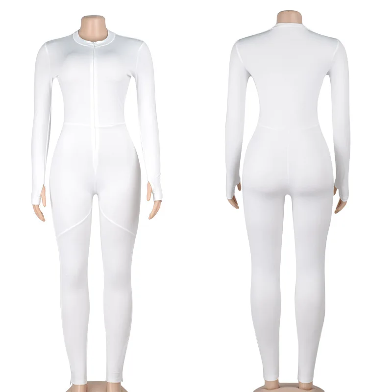 Женский элегантный комбинезон с длинным рукавом, белый однотонный Облегающий комбинезон для ночной вечеринки